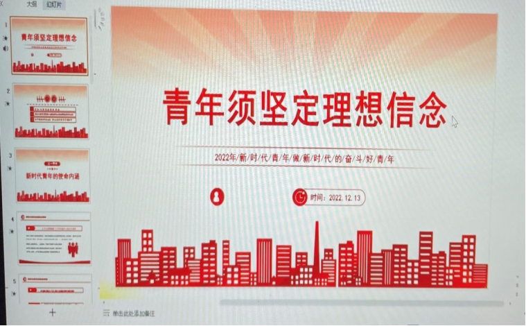 会议第三环节是学生代表交流发言。 22级人工智能2班尤阳阳同学表示作为一名新时代青年,要听党话跟党走,学习好、宣传好二十大精神,为中华民族伟大复兴贡献自己的一己之力。 22级计算机应用技术3班的程梦玲同学认为青春是用来奋斗的,她会以自己的实际行动积极向党组织靠拢。