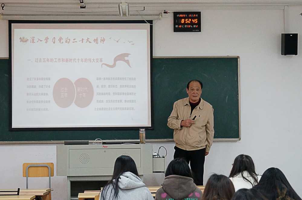 “开学第一课”以学习贯彻党的二十大精神、学习领会全国两会精神以及以实际行动筑梦自强新时代三个方面为主要内容。在第一部分“学习贯彻党的二十大精神”中,平杰从党的二十大主题、过去五年的工作和新时代十年的伟大变革、开辟马克思主义中国化时代化新境界、新时代新征程中国共产党的使命任务四个方面,向同学们讲授了党的二十大精神。