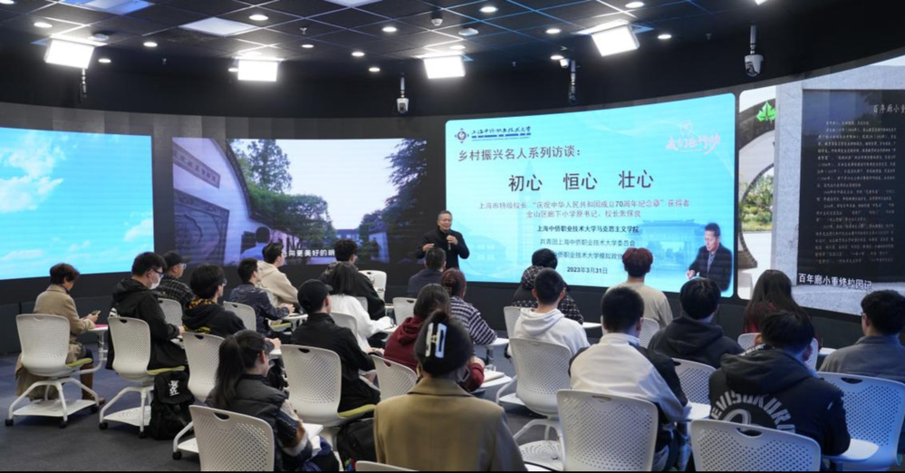 2023年3月31日下午2点,上海中侨职业技术大学马克思主义学院举办乡村振兴名人系列访谈活动,邀请上海市特级校长、“庆祝中华人民共和国成立70周年纪念章”获得者、金山区廊下小学原书记、校长朱保良作为重要访谈者莅临中侨大学,作“初心 恒心 壮心”主题讲座,受到马克思主义学院教师、模拟政协协会成员以及其他专业学生代表的热烈欢迎。
