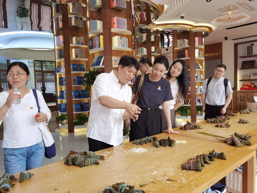 最后,亭林镇委员会干部再次带领马院全体教师参观亭林公园、亭林书院和顾公广场三处集历史文化、生态休闲、名人文化于一体的红色教育景点,参观了玉篇文化博物馆,亲身学习各类《玉篇》珍稀古本和文献典籍,领略了亭林黑陶工艺这一优秀传统文化的魅力,以及“江东孔子”顾野王的事迹与功绩,使全体教师深深感受到金山亭林作为良渚文化发祥地之一,所拥有的独特的非遗文化和历史古迹,以及历史文化遗产散发出无形的吸引力。同时,深受此文化氛围的熏陶,在端午佳节即将到来之际,教师们互相学习包粽子,亲身体验中华民族传统习俗,还开展了“写最美中国字,做合格思政人”硬笔书法活动,在传承发扬优秀传统文化的同时,进一步坚定了作为思政课教师的使命与责任,推进了学校“三全育人”的综合改革。