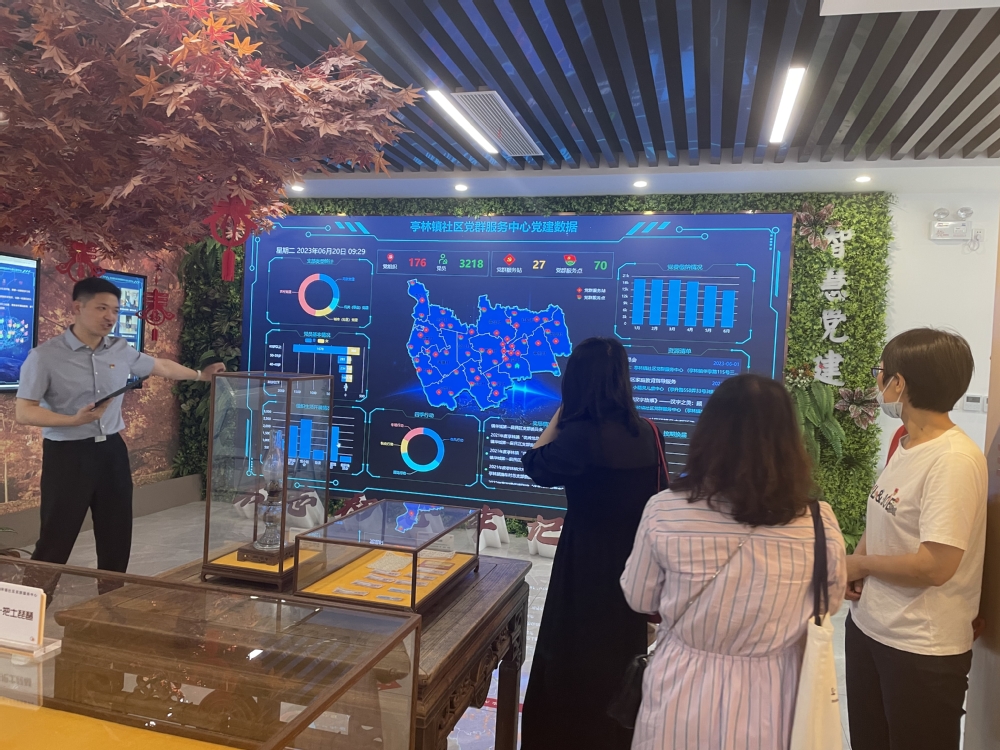 首先,亭林镇委员会干部带领马院全体教师参观亭林镇党群活动中心,并与党群活动中心党支部结对。教师们参观了敞开式的问津书房、数字化智慧大屏、知识竞答区、亭林红色记忆展厅、云间艺坊、三息会等活动区,还了解了“六学”并进创新学习模式;名人祖居点、来复会、浦南区委旧址等“一点一会一址”的亭林红色元素;“三息会”“健康驿站”等便民服务站;“双沉双带”党建新模式等特色,体现了亭林镇始终坚持“学党史、悟思想、办实事、开新局”的总体目标。随后,亭林镇委员会党委委员谢芳勤为大家详细介绍了亭林镇的相关信息,包括亭林镇居民基本情况、党员数量和活动、亭林镇便民服务开展情况、亭林镇红色文化底蕴等,表示希望未来与中侨马院能够有更多的经验交流,扎实推进好党建工作。