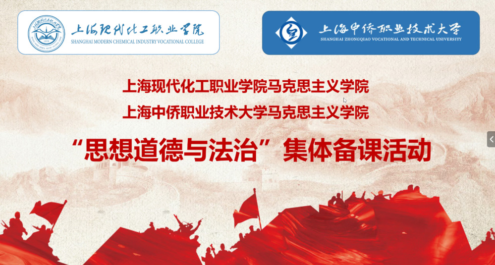 为深入贯彻习近平总书记关于“大思政课”的重要指示和系列讲话精神,全面落实《全面推进“大思政课”建设的工作方案》,把思想政治工作贯穿教育教学全过程,探索“大思政课”协同共享机制。2023年10月26日,上海中侨职业技术大学马克思主义学院与上海现代化工职业学院马克思主义学院联合开展了“思想道德与法治”集体备课教研活动。