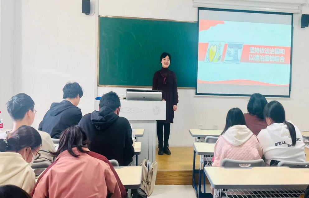 袁莺老师紧紧围绕《坚持依法治国和以德治国相结合》的教学主题,从依法治国和以德治国的联系和区别、如何坚持法治和德治相结合推进治国理政的进程、坚持依法治国和以德治国与成长于新时代的青年有何关系以及新时代青年如何做到德法兼修四个方面进行了精彩的课堂授课。袁老师让在场的老师们感受到了扎实的专业功底、热爱讲台的信念、深情并茂的讲授、灵活多变的教学手段,也让在场的学生感受到一堂好课可以唤醒沉睡的心灵,一堂好课犹如一顿精神大餐,全场学生参与度满满,主题讨论、观点投票、学生纷纷举手表达。在座师生深受启发,示范课巡讲活动取得很好成效。
