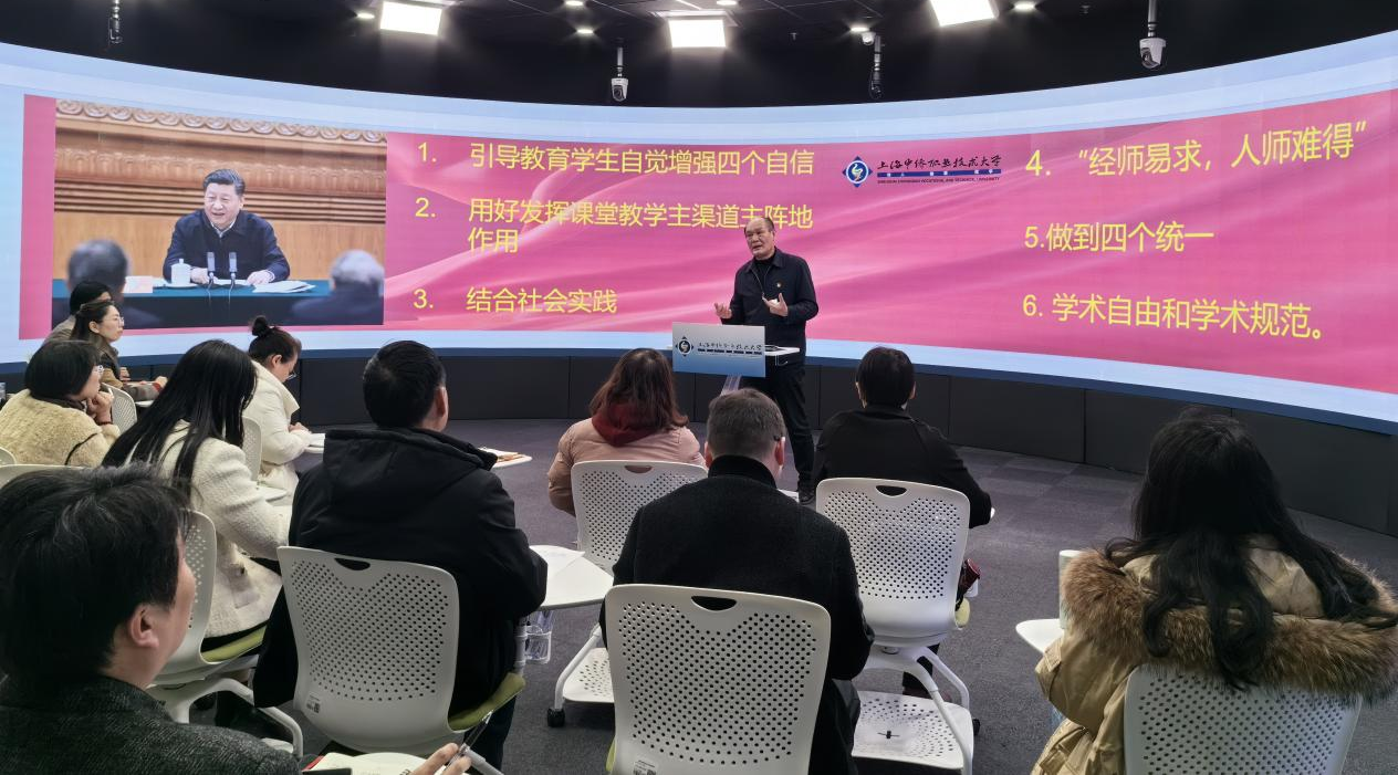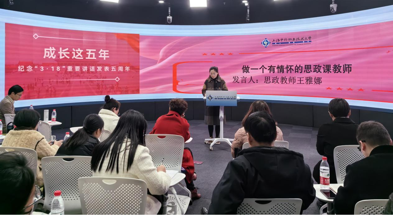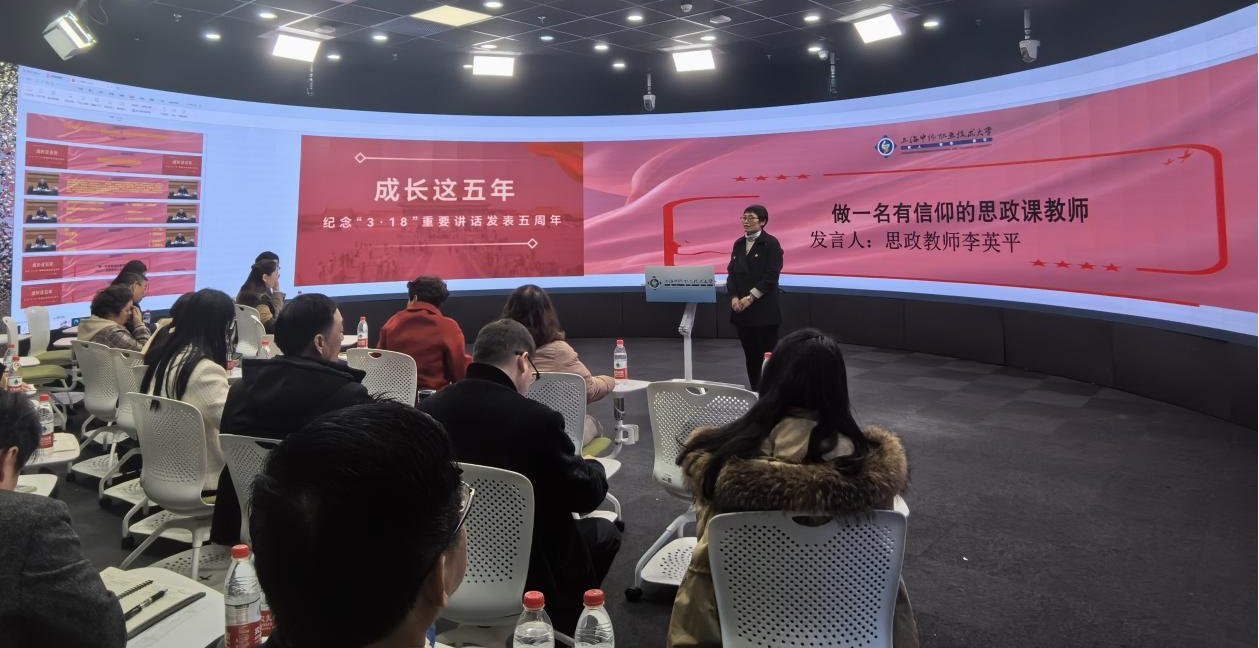 今年是习近平总书记在学校思想政治理论课教师座谈会上发表重要讲话五周年,为深入学习贯彻习近平新时代中国的特色社会主义思想,推动思政育人工作高质量发展,总结部署学校思政课改革创新相关工作,3月15日,上海中侨职业技术大学在数字全景会议室召开“牢记习近平总书记‘3.18’重要讲话精神,做党和人民满意的思政课好教师”座谈会。党委书记平杰及马克思主义学院全体思政课教师参加座谈会。马克思主义学院教师于跃跃主持会议。