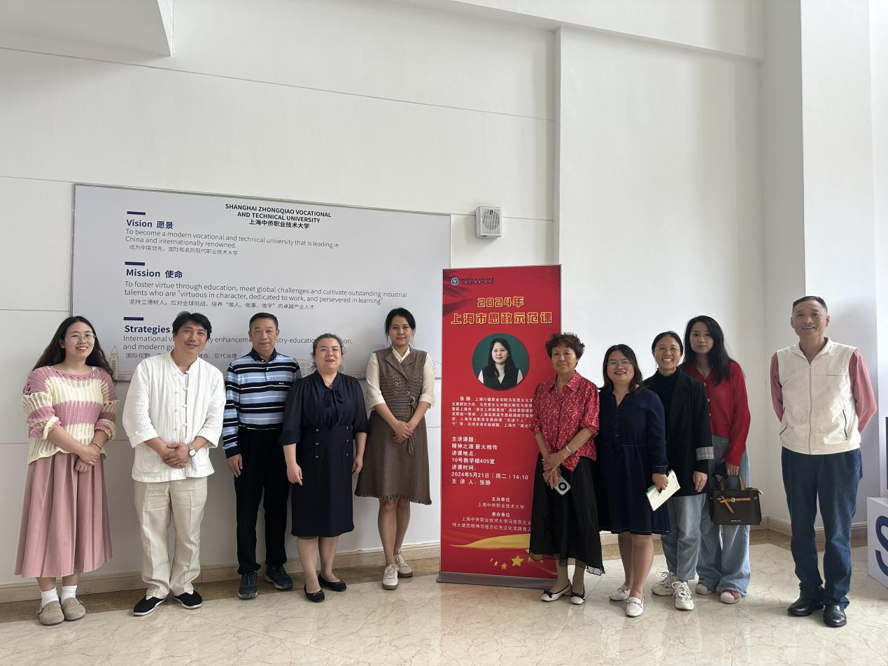 为深入学习贯彻习近平总书记对学校思政课建设的重要指示,贯彻落实中共中央办公厅、国务院办公厅《关于深化新时代学校思想政治理论课改革创新的若干意见》,增强思想政治理论课教学模式和内容的共建、共进、共享。5月21日下午,上海中侨职业技术大学马克思主义学院特邀上海行健职业学院马克思主义学院讲师、上海市高职高专思政课“教学骨干”、上海市“晨光学者”张静老师走进我校思政课课堂,开展思政示范课活动。马克思主义学院党支部书记封晓莉、常务副院长张天喜、教学副院长郭晓平和学院十余位教师参与课堂听课。