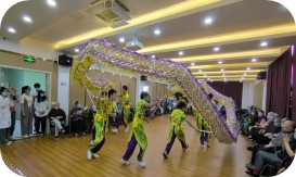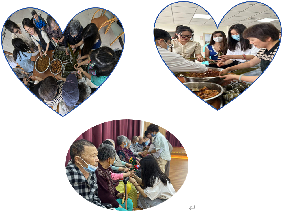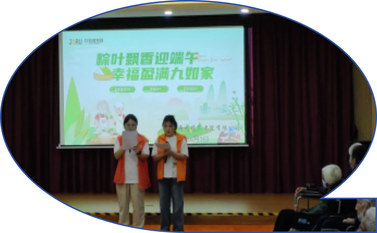 端午节不仅是“诗人节”,还是“体育节”。赛龙舟,是端午节一项重要的习俗活动。因条件所限,只能通过屏幕,请老人们观看中侨大学的龙舟队在百舸争流中展示的力与美,虽然耳背眼花,但依然被一条龙舟一条心,心中有火、眼里有光,决定灿烂,山无遮,海无拦的青年气势所感染。民船赛事与青春韶华作伴,获得的辛勤付出的丰硕成果。