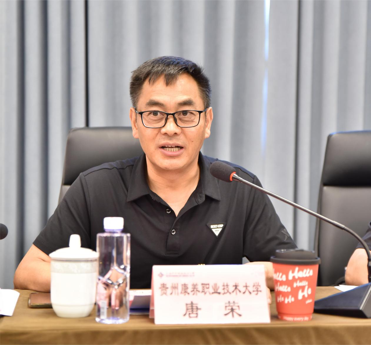 贵阳康养职业大学马克思主义学院副院长唐荣对该校马克思主义学院的发展历史、基本情况进行简单介绍,并分享了马院教学方法、基地建设、科研情况以及红色资源等内容。