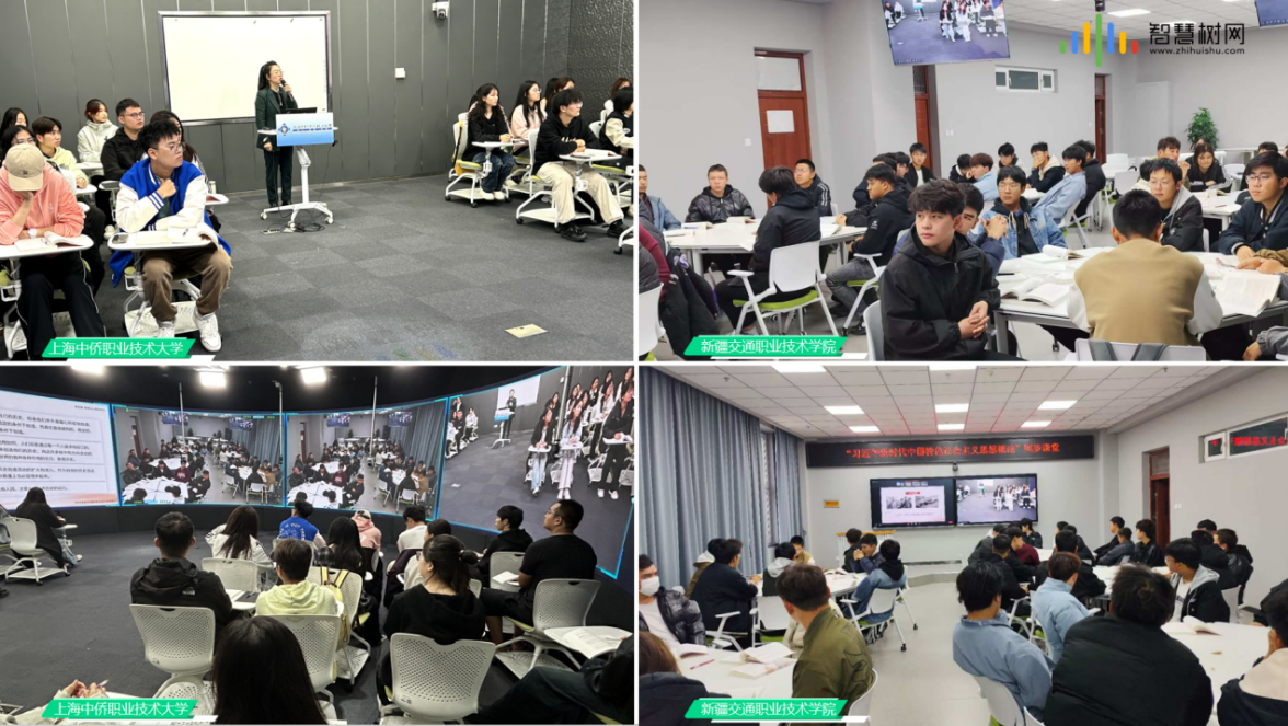 为贯彻落实党的二十届三中全会精神和全国教育大会精神,积极响应《关于新时代振兴中西部高等教育的意见》,深入实施“慕课西行”计划,促进东西部职业院校思政课建设共同发展,推进信息技术与教育教学深度融合,2024年11月1日-5日,上海中侨职业技术大学马克思主义学院与新疆交通职业技术学院马克思主义学院共同举办了两场线上线下实时联动、校际之间无缝对接的同步课堂活动。本次活动由智慧树平台提供全程的技术支持。