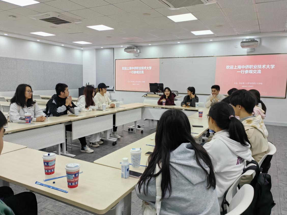 随后,与会双方进行自由交流。双方表示要进一步学习互鉴、组织交流研讨、开展实践体验、在担当中历练,在尽责中成长,做走在时代前列的奋进者、开拓者、奉献者。交流结束后,上海中侨职业技术大学学生团队在讲解员的带领下参观了华东理工大学校史馆和华东理工大学马院研究生院。