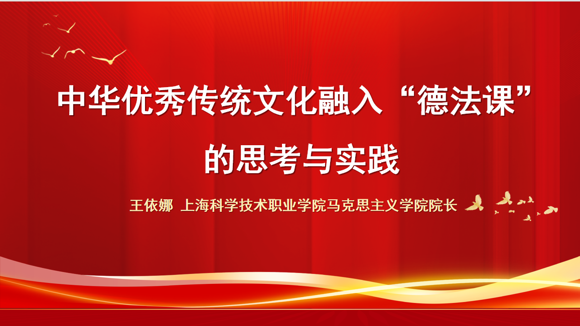 上海科学技术职业学院马克思主义学院院长王依娜以中华优秀传统文化融入“德法课”的思考与实践为主题,从儒家思想文化为切入点,结合教学实际,系统阐述了如何将中华优秀传统文化融入思政课堂,切实提升学生对于中华优秀传统文化的认识与理解,进而形成一个全方位、多层次、立体化的育人格局。