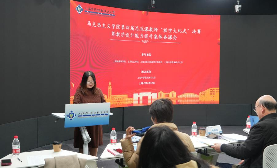 为学习贯彻全国教育大会精神和新时代学校思政课建设推进会精神,全面落实习近平总书记关于思政课建设的重要论述,切实提升思政教师的教学能力,充分发挥思政课立德树人的关键作用,2024年12月10日,上海中侨职业技术大学马克思主义学院开展第四届“教学大比武”决赛暨教学设计能力提升集体备课会。