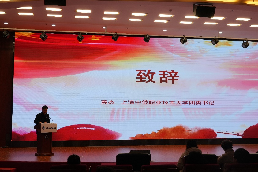 活动伊始,上海中侨职业技术大学团委书记黄杰老师发表致辞。黄老师立足新时代高校立德树人根本任务,充分肯定了大学生讲思政课和“我心中的思政课”——微电影比赛的重要意义,充分肯定了参赛师生的付出与努力。同时,黄老师强调,此类活动的开展,不仅是思政课走深走实的重要实践,也是学生走近理论、感悟真理魅力的重要探索,必须持续推进。