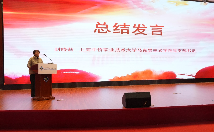 表演结束后,马克思主义学院党支部书记封晓莉进行总结发言。封书记对参与大学生讲思政课和“我心中的思政课”——微电影比赛的师生们表示了诚挚的感谢,充分肯定了他们在比赛中的辛勤付出与卓越表现。同时,封书记聚焦新时代高校思政课建设内涵式发展和高校人才培养,强调了大学生讲思政课和“我心中的思政课”——微电影比赛对于培育时代新人的重要意义,并表示学院将持续推进此类赛事。