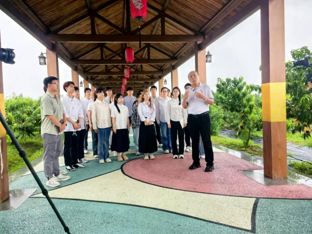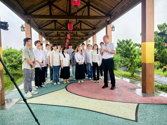为深入学习贯彻党的二十大精神,落实习近平总书记对学校思政课建设作出的重要指示,推动新时代思政课展现新气象、实现新作为,开创新时代思政教育新局面。2024年6月20日,上海中侨职业技术大学党委书记平杰带领中侨师生沿着习近平总书记的足迹来到上海市金山区“三个百里”重要指示萌发地,为大家讲授了一堂精彩纷呈的田间思政课。 学习“三个百里”重要指示精神 思考谋划职业技术教育未来 民族要复兴,乡村必振兴。乡村振兴战略是以习近平总书记为核心的党中央对“三农”工作做出的重大决策部署。乡村是上海这个超大城市发展的稀缺资源,也是上海国际大都市城市核心功能的重要承载地。2007年6月,时任上海市委书记习近平来金山区调研时作出“金山要建设百里花园、百里果园、百里菜园,成为上海的后花园”重要指示。 此次田间思政课,上海中侨职业技术大学党委书记平杰首先带领中侨师生走进吕巷镇金石蟠桃园,在“三个百里”重要指示的石碑旁,为大家讲解了“三个百里”重要指示的渊源与重大意义。平书记强调:“中侨大学,地处金山区,地处党的创新理论重要萌发点,在探索职业技术特色办学、助力乡村振兴推动区域一体化发展方面,具有独特优势,也面临巨大发展机遇。中侨师生要发挥职业教育优势,助力乡村振兴,推动区域发展”。