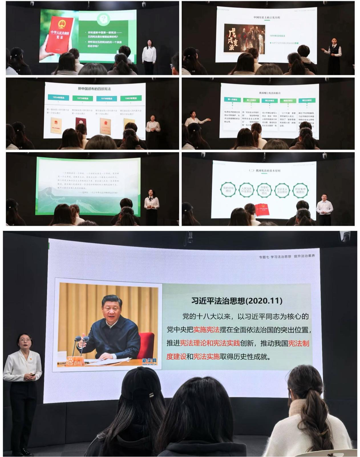 此次课程通过线上线下融合、课内课外联动、校内校外互通、理论实践结合及沪杭同频互动的创新方式,由八位老师合作完成,王猛老师给予线上技术支持,为本学期《思想道德与法治》课程的学习画上了圆满的句号。面对全体学生实地探访杭州“五四宪法”历史资料陈列馆的现实困难,马院教师精心策划,将杭州“五四宪法”陈列馆深厚的历史底蕴与丰富的教育资源巧妙融合,为大家打造了一堂宪法精品课。