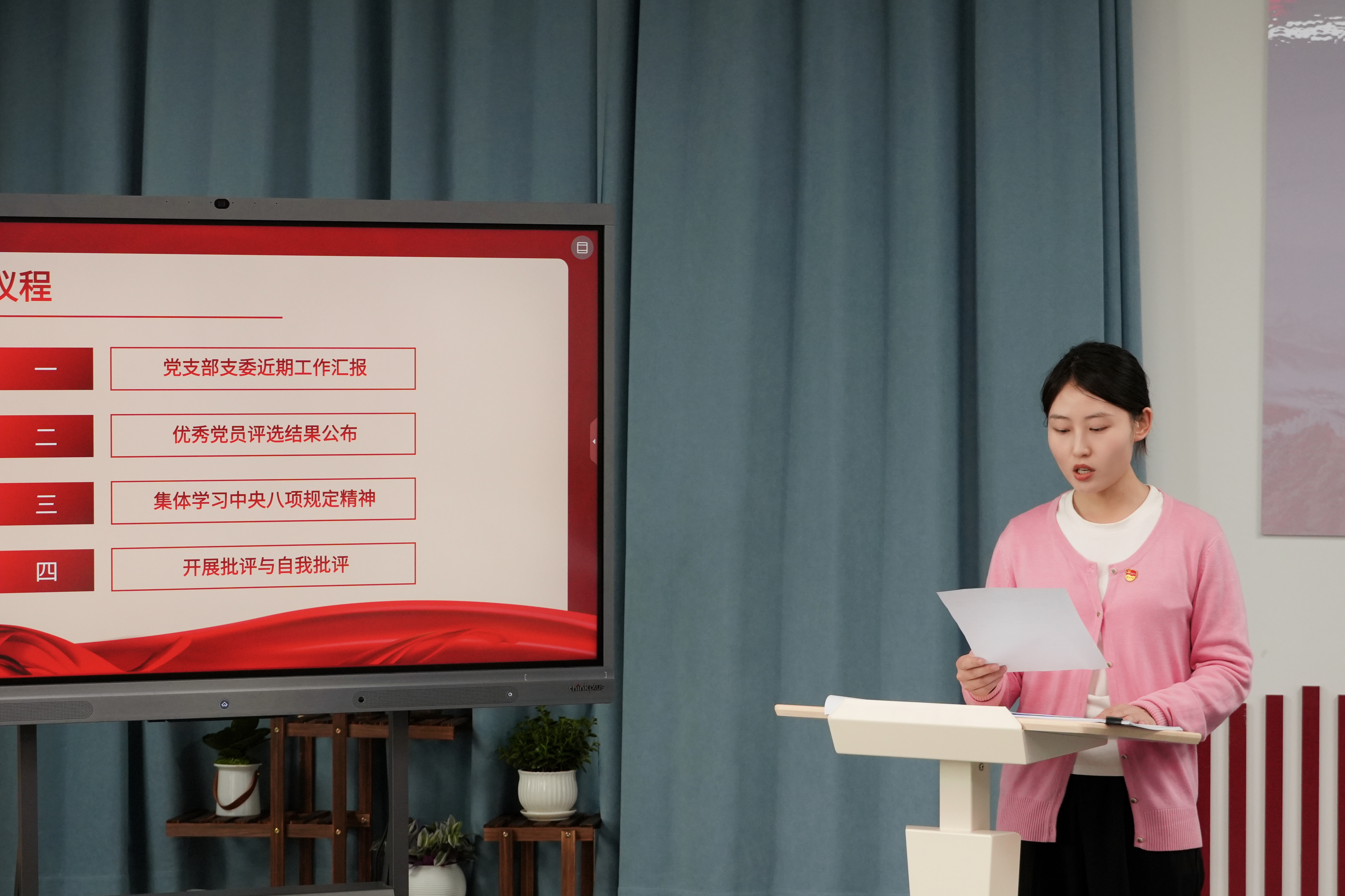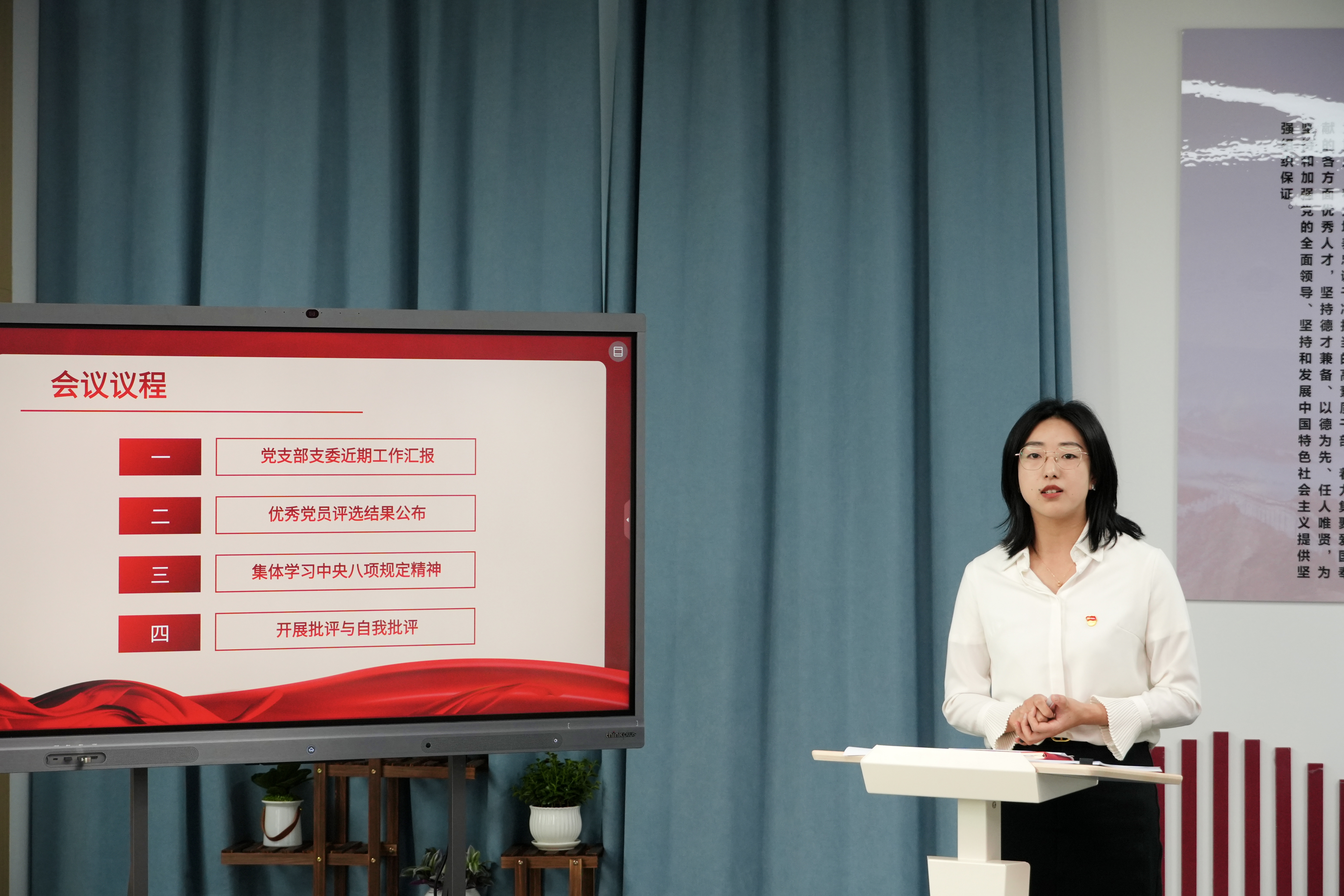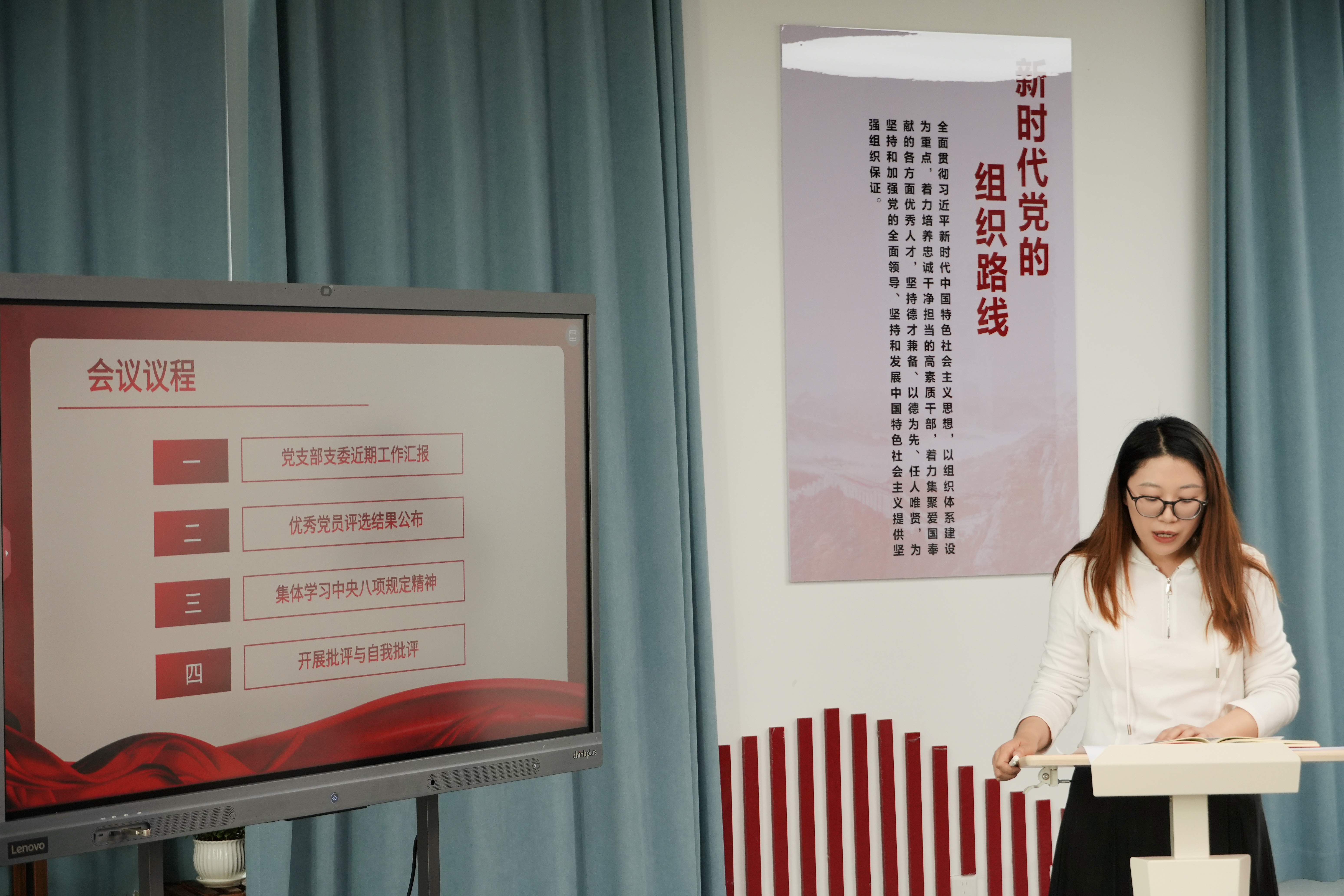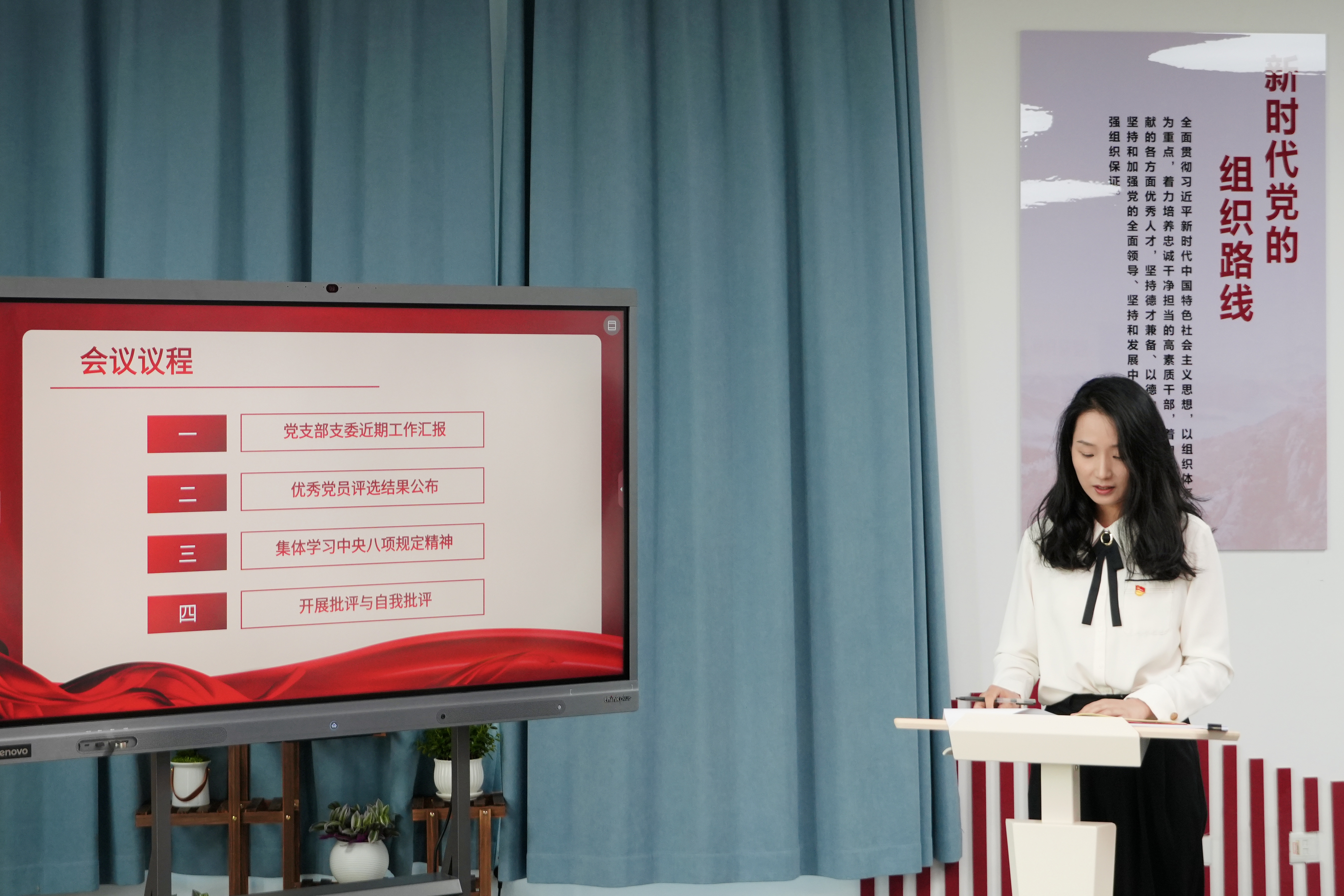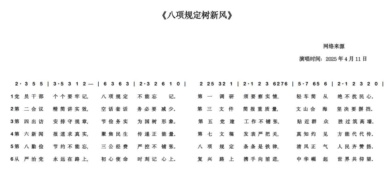 会议创新学习形式,全体党员齐唱廉政歌曲《八项规定树新风》,以艺术形式推动廉洁教育入脑入心,凝聚作风建设共识和行动。