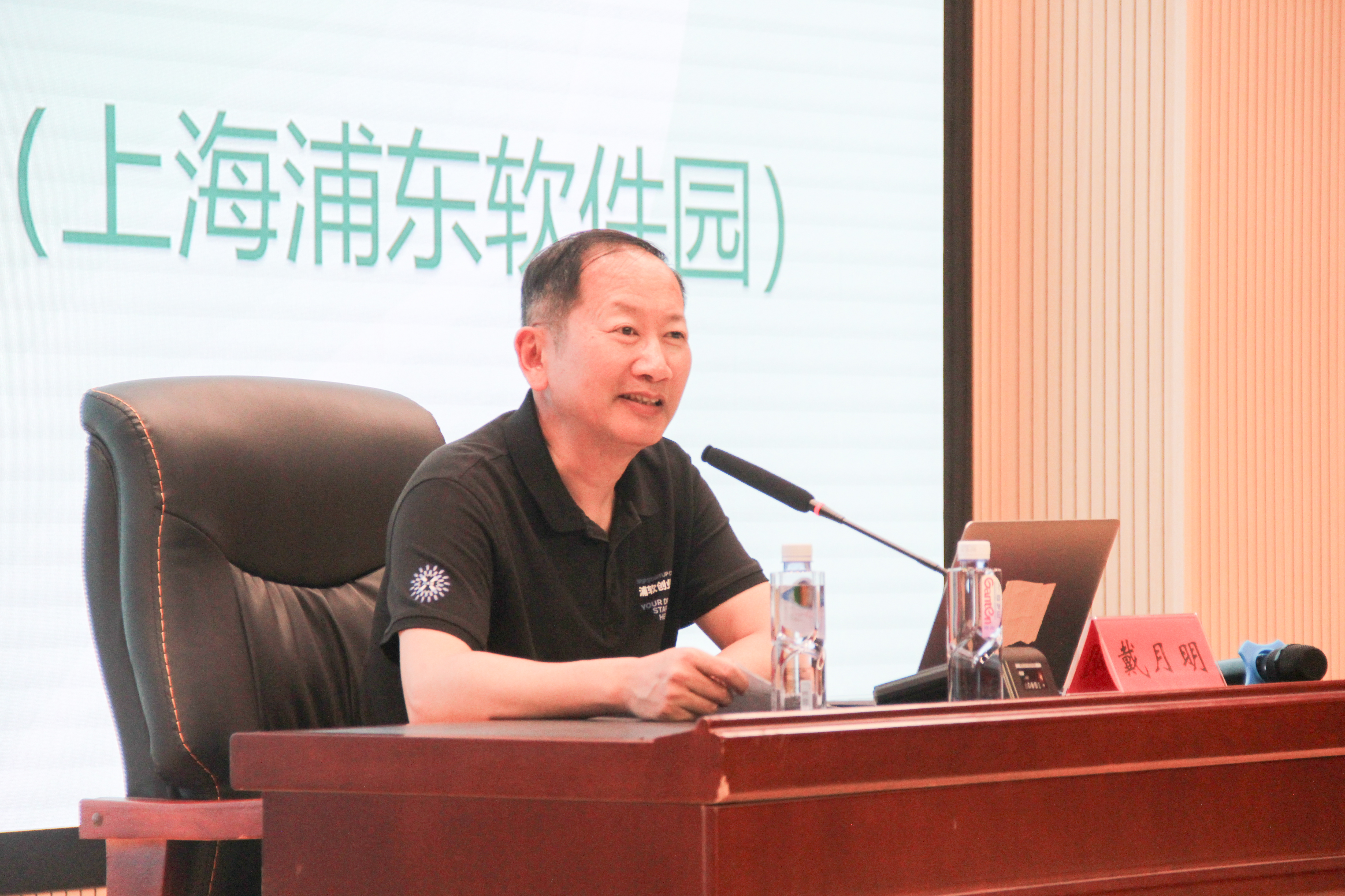 随后,上海浦东软件园股份有限公司副总经理戴月明作题为《中国传统人生智慧:当代大学生的修为之路》的主题报告。戴经理以《孙子兵法》与模型算法为对照,阐释了四大传统智慧对当代青年的实践价值。他强调,传统智慧是青年应对时代变革的“精神算法”,当代青年要牢固树立“长期主义”修为观、锚定创新伦理坐标、构建知行合一行动框架、培育智慧融通思维,在经典阅读中筑牢根基,于专业精进里实现创造性转化。