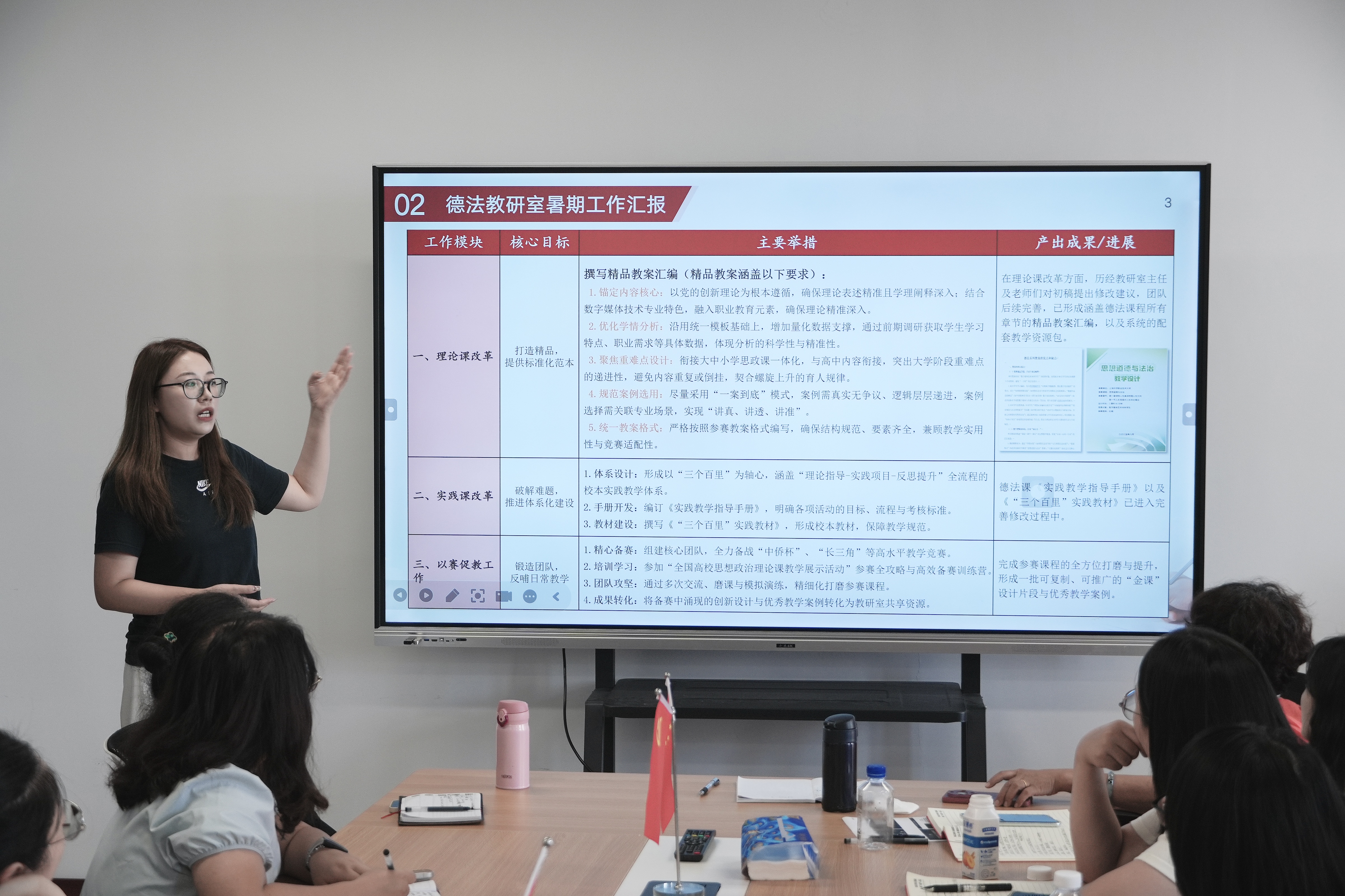 最后,各教研室依次汇报暑期工作进展与新学期工作计划,聚焦教案修订、实践教学创新、集体备课等重点内容,交流经验、共享思路,进一步明确了新学期课程建设与教学改革的方向。