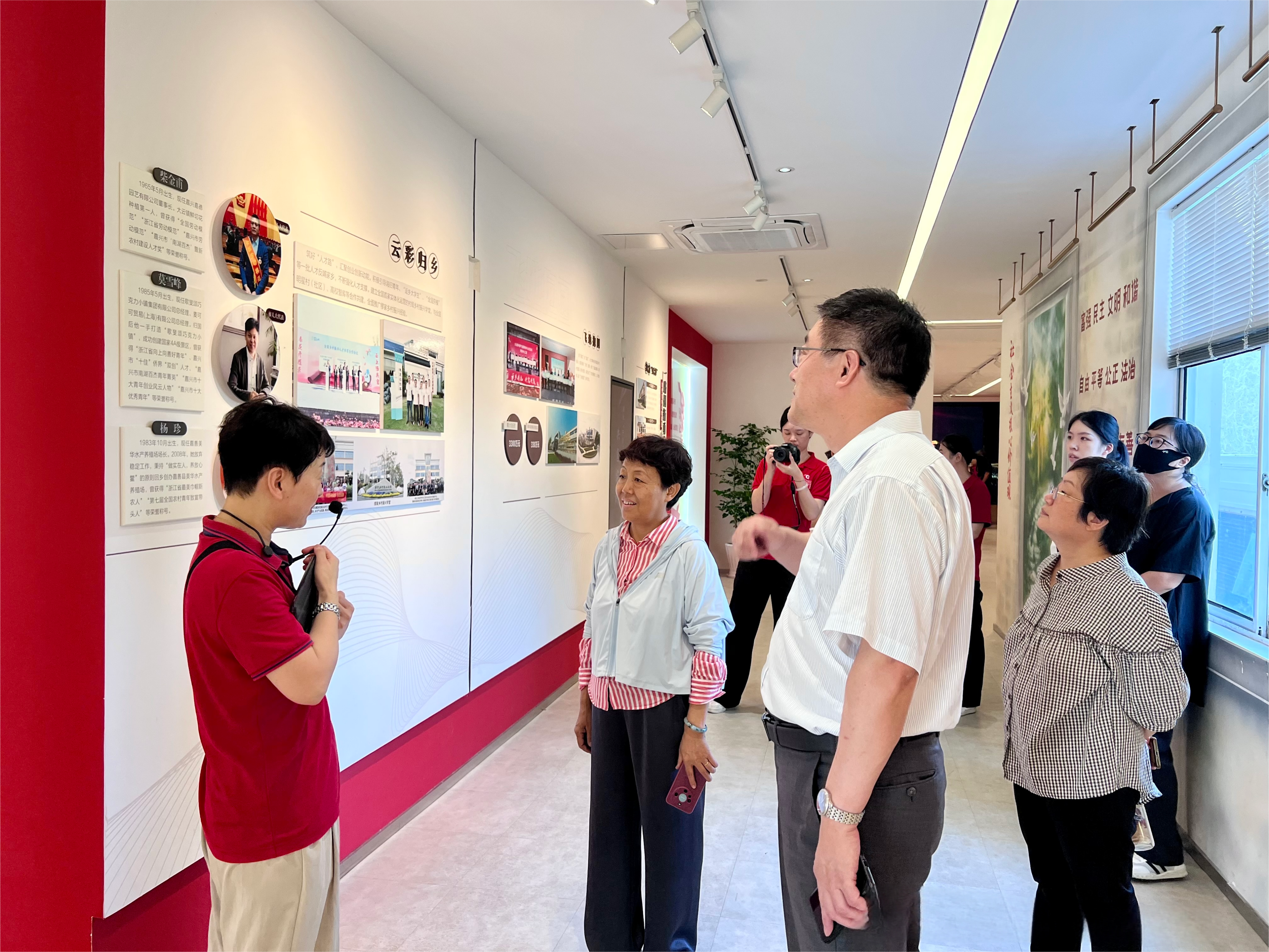 为深入贯彻“大思政课”综合改革精神,创新思政课教学范式,拓展历史与现实相贯通、理论与实践相结合的教学场域,将乡村振兴一线的奋斗精神与实践智慧转化为思政育人动能,切实提升思政课感染力,9月16日,马克思主义学院组织教师团队赴浙江省嘉善县大云镇缪家村,开展了一场以乡村振兴为主题的高质量研学活动。本次活动由马克思主义学院常务副院长张天喜、书记封晓莉带队,郜工农、周淑敏等六名教师参与,旨在通过实地探访“千村示范、万村整治”工程样板缪家村,系统解码乡村振兴与共同富裕的实践密码,强化思政课教师的政治认同、理论自觉与育人使命,进一步推动“大思政课”内涵式建设与教学创新。 本次研学以缪家村为重点现场教学点,教师团队深入村居、田园与缪家村史馆,系统考察缪家村从昔日贫困村跃升为全国乡村振兴示范村的历程。在缪家村史馆,教师们通过图文、实物和数字化展陈,全面了解了缪家村在“八八战略”和“千万工程”引领下的发展路径,重点关注其在基层组织建设、产业融合、生态治理、乡村文旅、人才机制等方面的创新实践。大家边走边看、边听边问,与村干部、村民代表开展座谈,深入探讨“党建强村、产业兴村、文化润村”的缪家经验如何体现出科学方法论与中国特色社会主义的实践伟力。