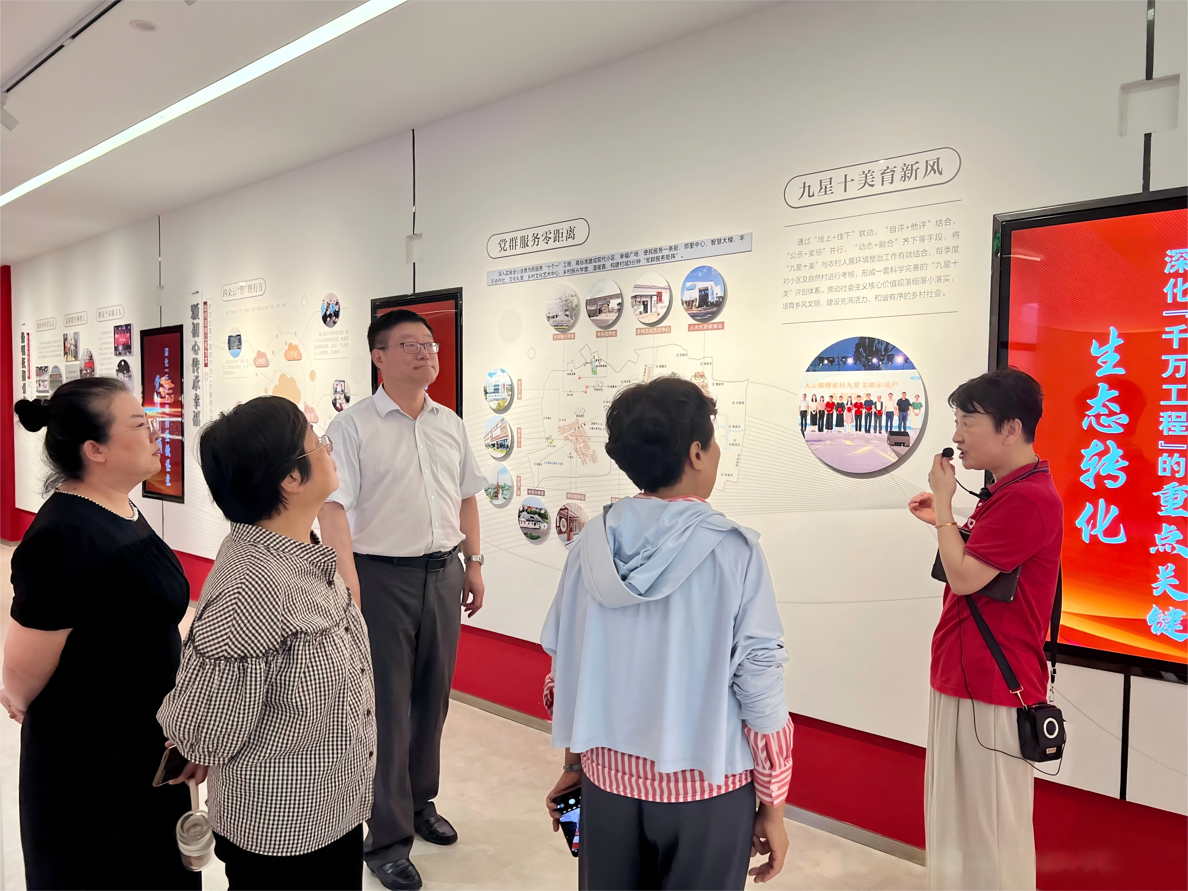在幸福广场,教师们见证了城乡融合发展的生动场景:健身区、文化长廊、老年活动中心、儿童乐园等设施一应俱全,村民在家门口享受优质公共服务,真实感受到城乡共富带来的民生温度。便民服务一条街上的“一站式”政务服务窗口、智慧养老驿站和乡村图书馆,更是现代化治理理念在基层的鲜活体现。缪家村的发展实践证明,乡村振兴是经济、政治、文化、社会、生态“五位一体”的协同推进,是以党建引领为核心、人民福祉为依归的全面振兴。