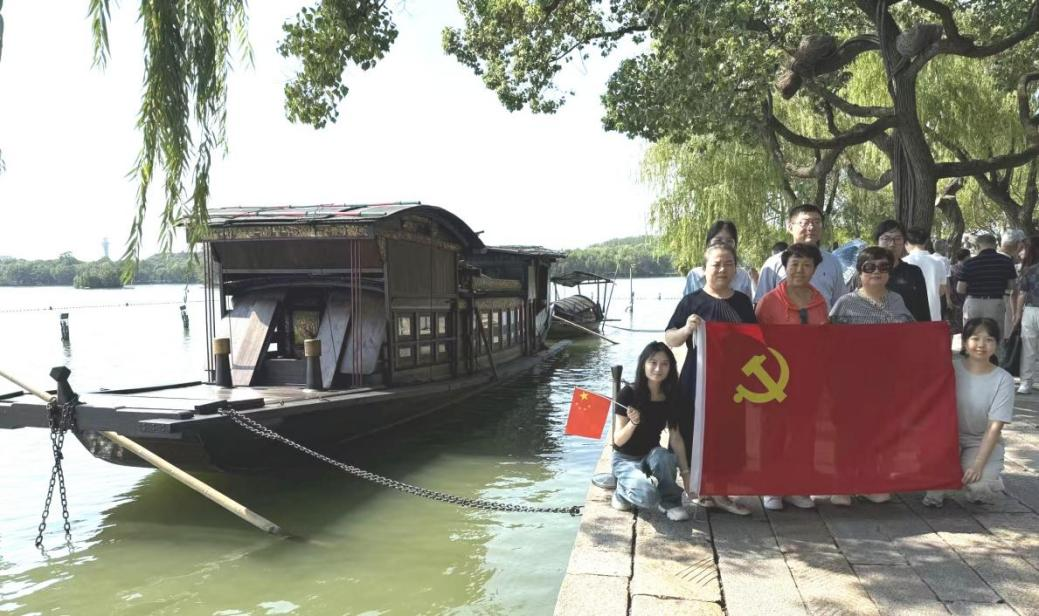 为全面贯彻落实“大思政课”综合改革精神,推动红色文化资源与思政课教学深度融合,增强课堂的思想性、理论性与亲和力,9月17日,马克思主义学院组织教师赴浙江嘉兴南湖革命纪念地开展红色研学。本次活动由马克思主义学院常务副院长张天喜、书记封晓莉带队,郜工农、周淑敏等六名教师参与。通过实地溯源党的创建历史、系统研学红船精神,团队旨在把历史与现实贯通、理论与实践结合,把“源头活水”转化为课堂中的思想动能与育人资源。 在南湖红船畔,教师们面向红船重温党的创建初心,沉浸式感悟信仰力量。大家一致认为,红船不仅是中国共产党的精神原点,更是思政课教学的生动课堂与鲜活教材。张天喜院长强调,思政课要善于在“源头现场”中提炼可入课的叙事单元,用历史逻辑解释现实问题,用精神谱系启迪青年成长。封晓莉书记表示,要把红船精神转化为学生“可感知、可讨论、可践行”的问题链和任务群,推动价值引领与能力培养协同发力。