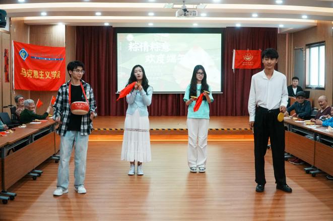 养老院满怀热情的鼓励中侨青年:年年岁岁过端午,岁岁年年棕飘香,中侨马院志愿者用一场精彩纷呈的表演,为爷爷奶奶们送来了节日的温暖与祝福,粽香沁心、岁月回甘,糯米裹着蜜枣的甜,棕叶兜住时光的暖,爷爷奶奶们吃着热气腾腾的粽子,褶皱里藏着的笑意比粽香更浓。