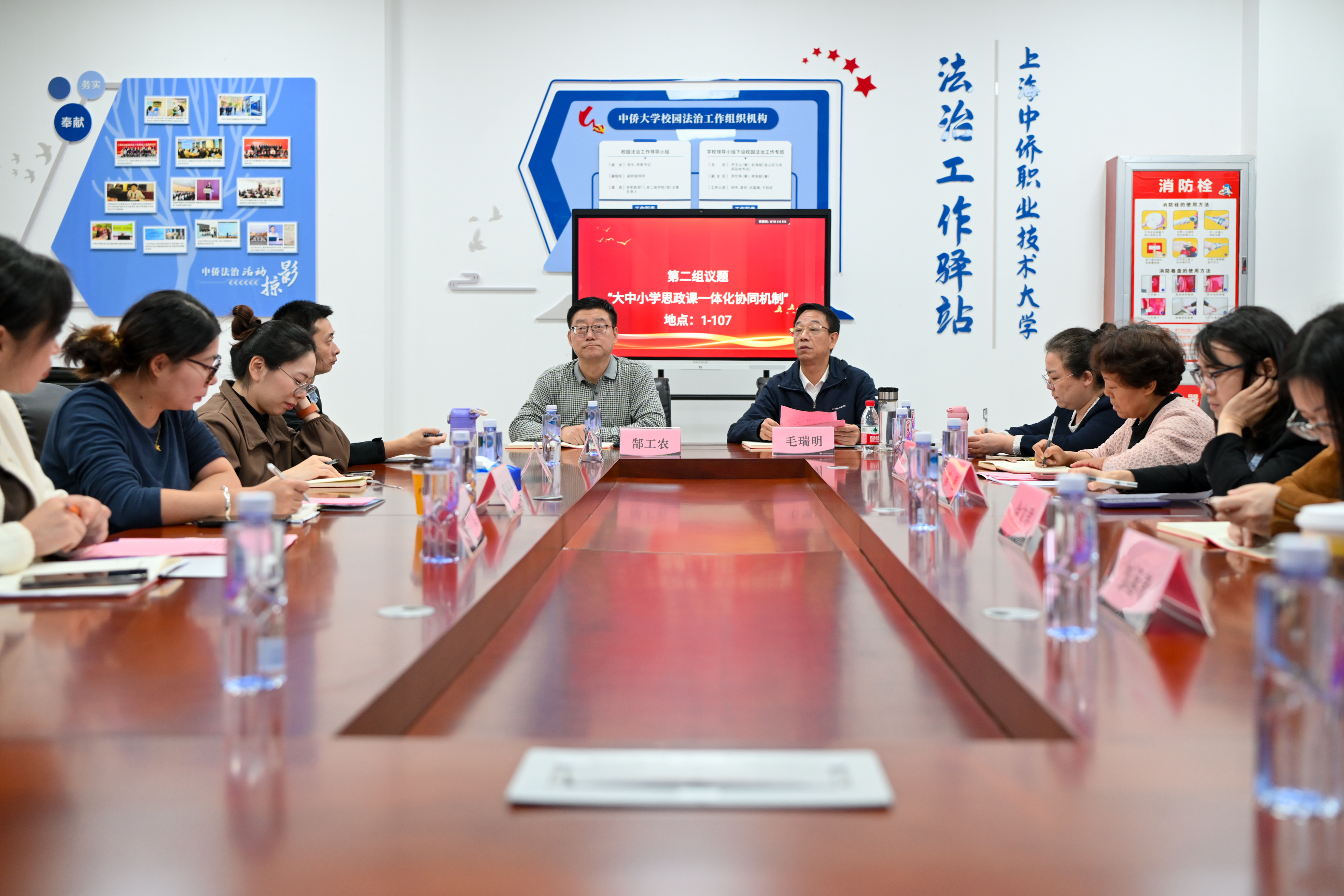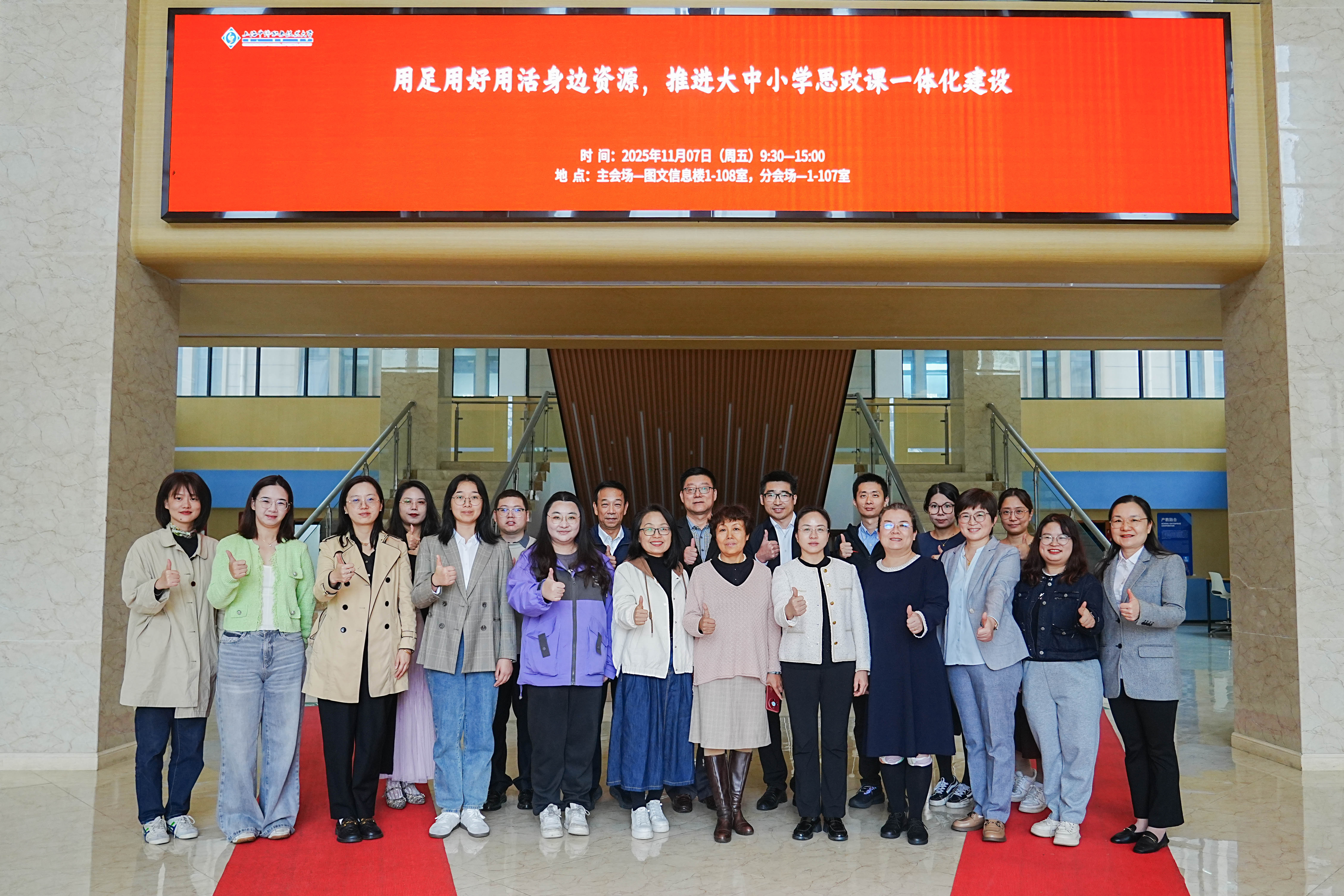 为全面贯彻落实习近平总书记关于大中小学思政课一体化建设的重要论述精神,推动大中小学思政课系统性改革创新,共同探索构建循序渐进、螺旋上升的大中小学思政课育人新格局,实现高校思政课建设内涵式发展,11月7日,上海中侨职业技术大学马克思主义学院顺利举办“用足用好用活身边资源,推进大中小学思政课一体化建设”专题研讨会。本次研讨会旨在通过盘活区域特色资源、贯通学段壁垒、汇聚育人合力,深化大中小学思政课一体化建设格局,强化思政课立德树人实效。研讨会由马克思主义学院常务副院长张天喜主持,特邀上海交通大学马克思主义学院、上海现代化工职业学院马克思主义学院、上海食品科技学校、张堰小学、学府小学、张堰中学等多所院校专家,以及金山区教育局综合科、金山区博物馆、漕泾镇党群服务中心、张堰镇社事办、廊下镇团委、吕巷水果公园等金山区相关职能部门与实践基地代表共同参与,马克思主义学院全体教师参加交流。