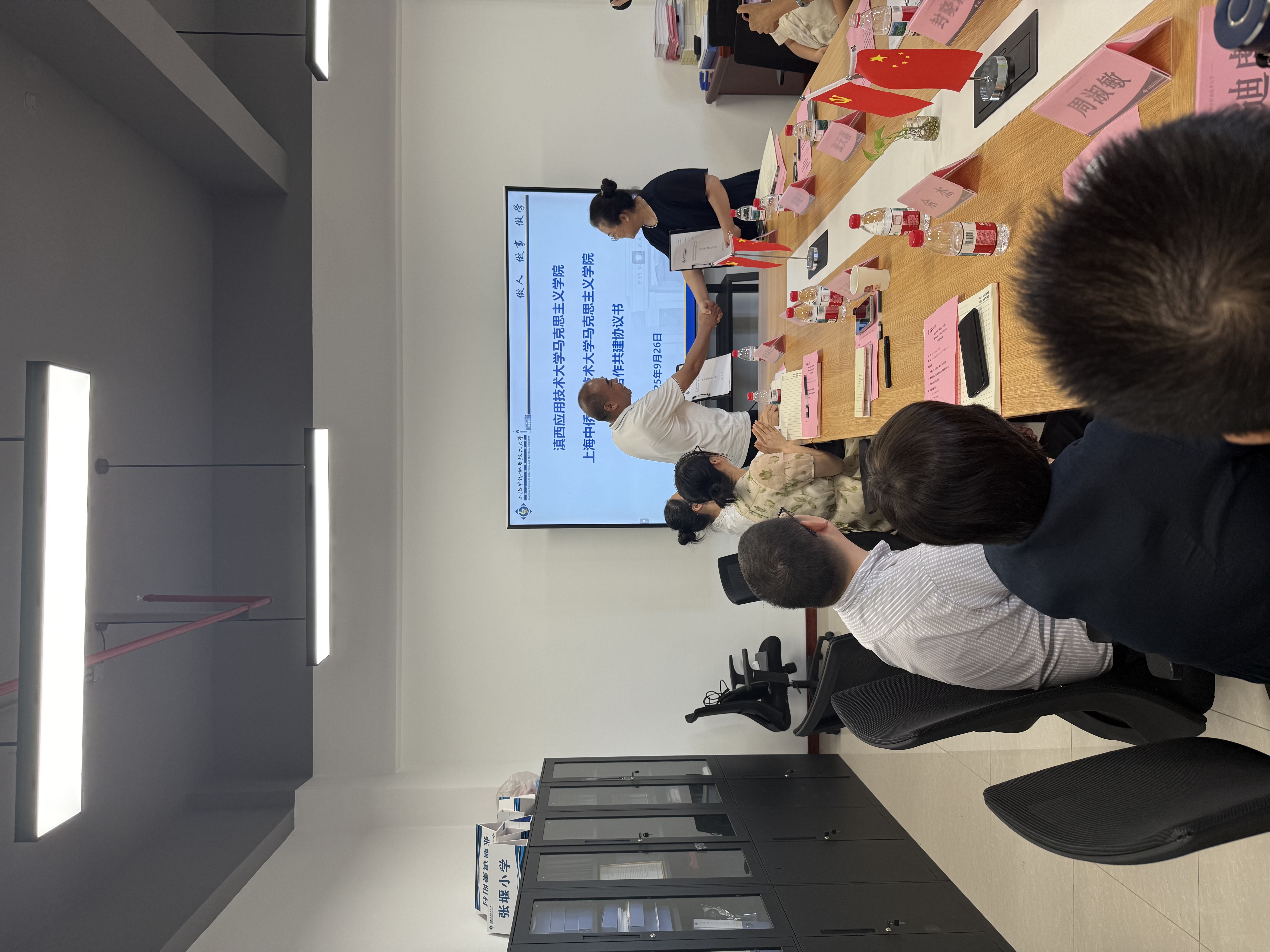 在核心研讨环节,双方围绕三大关键议题展开“零距离”深度交流,现场氛围热烈而务实。 本科评估准备工作经验交流:我校马克思主义学院党总支书记封晓莉率先发言,全面梳理了学院在迎接本科教学评估过程中的重点推进工作、已取得的阶段性成效及当前面临的难点问题。针对我校教师关心的评估核心要点,王国强院长结合自身经验,从实践方案制定与考核标准细化、考试试卷与平时作业评阅规范、教师队伍精细化管理、“三全育人”体系落地路径等方面,毫无保留地分享了宝贵经验,为我校进一步完善评估准备工作提供了清晰的指导方向。 教学改革与师资队伍建设探讨:我校马克思主义学院教学副院长郭晓平、骨干教师周淑敏副教授、斯迪虎副教授等,围绕思政课教学方法创新、课程思政资源开发、青年教师培养机制等具体问题,与王国强院长展开深入研讨,在教学改革思路、师资队伍建设策略等方面汲取了诸多先进经验。 学科建设特色发展交流:我校马克思主义学院郜工农副教授指出,两校马院可充分依托各自地区优势资源,探索差异化、特色化的学科发展路径。郜教授强调,我校马院正紧扣“新质生产力”发展要求,借助金山地区华东无人机基地等优质资源,打造“科技+思政”的大思政课教学模式;而滇西应用技术大学马院在“筑牢中华民族共同体意识”教育方面的成熟经验,同样值得我校学习借鉴,期待未来通过资源共享、优势互补,共同推动学科建设再上新台阶。 交流尾声,我校马克思主义学院常务副院长张天喜与滇西应用技术大学马克思主义学院院长王国强共同签署《院际合作共建协议》,双方代表共同见证这一重要时刻,并合影留念,为此次交流画上圆满句号。