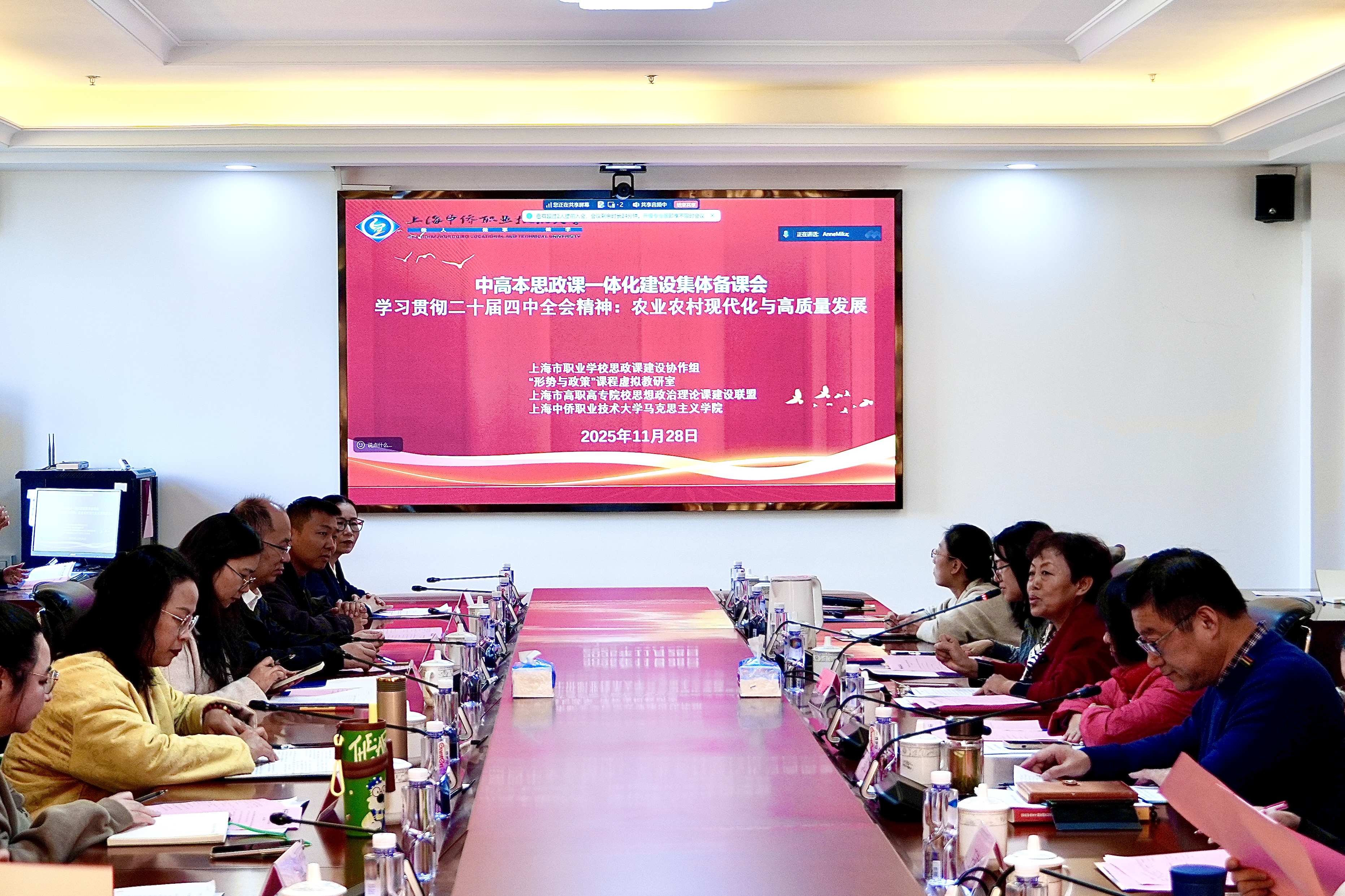 为深入学习贯彻党的二十届四中全会精神,准确把握其丰富内涵与核心要义,11月28日,上海市职业学校思政课建设协作组“形势与政策”虚拟教研室“中高本思政课一体化建设”集体备课会在上海中侨职业技术大学举行。本次会议聚焦“农业农村现代化与高质量发展”主题,采用线上线下相结合的方式开展,旨在推动全会精神有机融入思政课教学,提升育人实效。