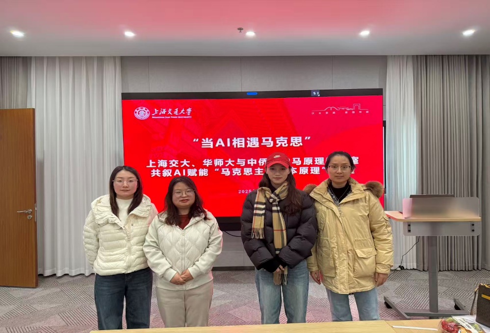 为深入贯彻“讲深、讲透、讲活”马克思主义基本原理的教学要求,推动人工智能技术与思想政治教育深度融合,2025年12月17日,上海交通大学、华东师范大学与上海中侨职业技术大学马克思主义基本原理教研室联合举办集体备课会,以“AI赋能‘马克思主义基本原理’课程”为核心,共商课程教学改革与育人实效提升之道。三校马原教研室骨干教师、教学管理负责人齐聚一堂,通过心得分享、案例研讨、实践交流等形式,碰撞思想火花,凝聚育人共识。 首先,三校的参会人员一起参观并体验了上海交通大学建立的“虚拟仿真实验室”。走进上海交通大学虚拟仿真实验室,大家都真切感受到AI技术为思政课教学带来的全新可能。沉浸式VR教学模块更让人眼前一亮,学生可与“数字历史人物”对话思辨,在还原的历史场景中深化对理论的理解。那些在课本上艰涩的范畴瞬间变得鲜活可感。技术在这里不是冰冷的工具,而是让思想“活”起来的桥梁。这不仅是技术的革新,更是教学理念的升级。AI与虚拟仿真技术打破了传统课堂的时空限制,让抽象的马克思主义原理变得可感可知。作为一线教师,唯有主动拥抱技术变革,将AI工具与教学实践深度融合,才能让思政课堂更具吸引力、说服力,真正让马克思主义理论扎根学生心田,从而焕发出更强大的解释力和生命力。