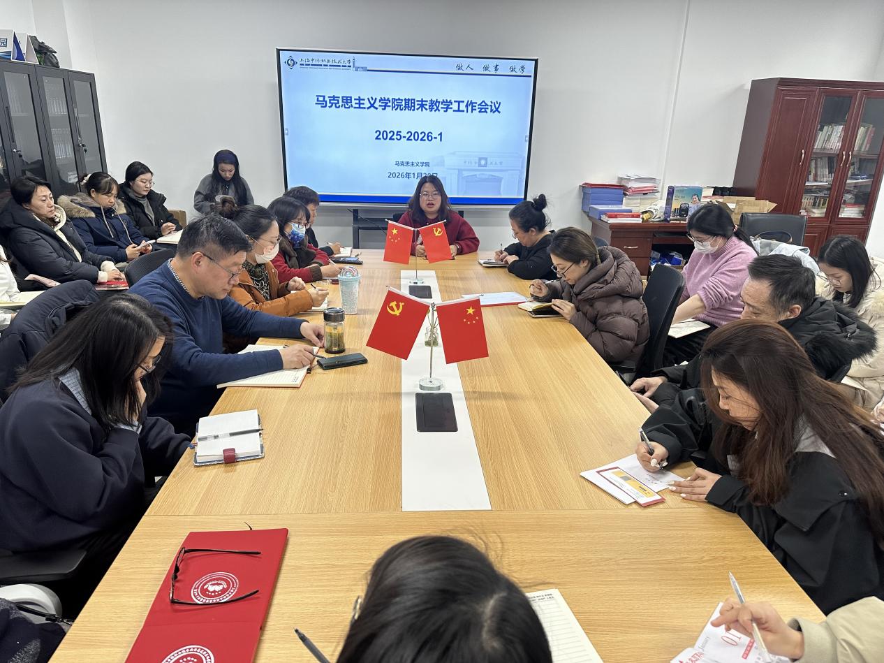 1月20日,上海中侨职业技术大学马克思主义学院召开期末教学工作会议,总结回顾2025-2026学年第一学期工作,并围绕学校“新双高”建设的整体要求做下一阶段的工作规划安排。会议由马克思主义学院教学副院长郭晓平主持,全体教师参加。