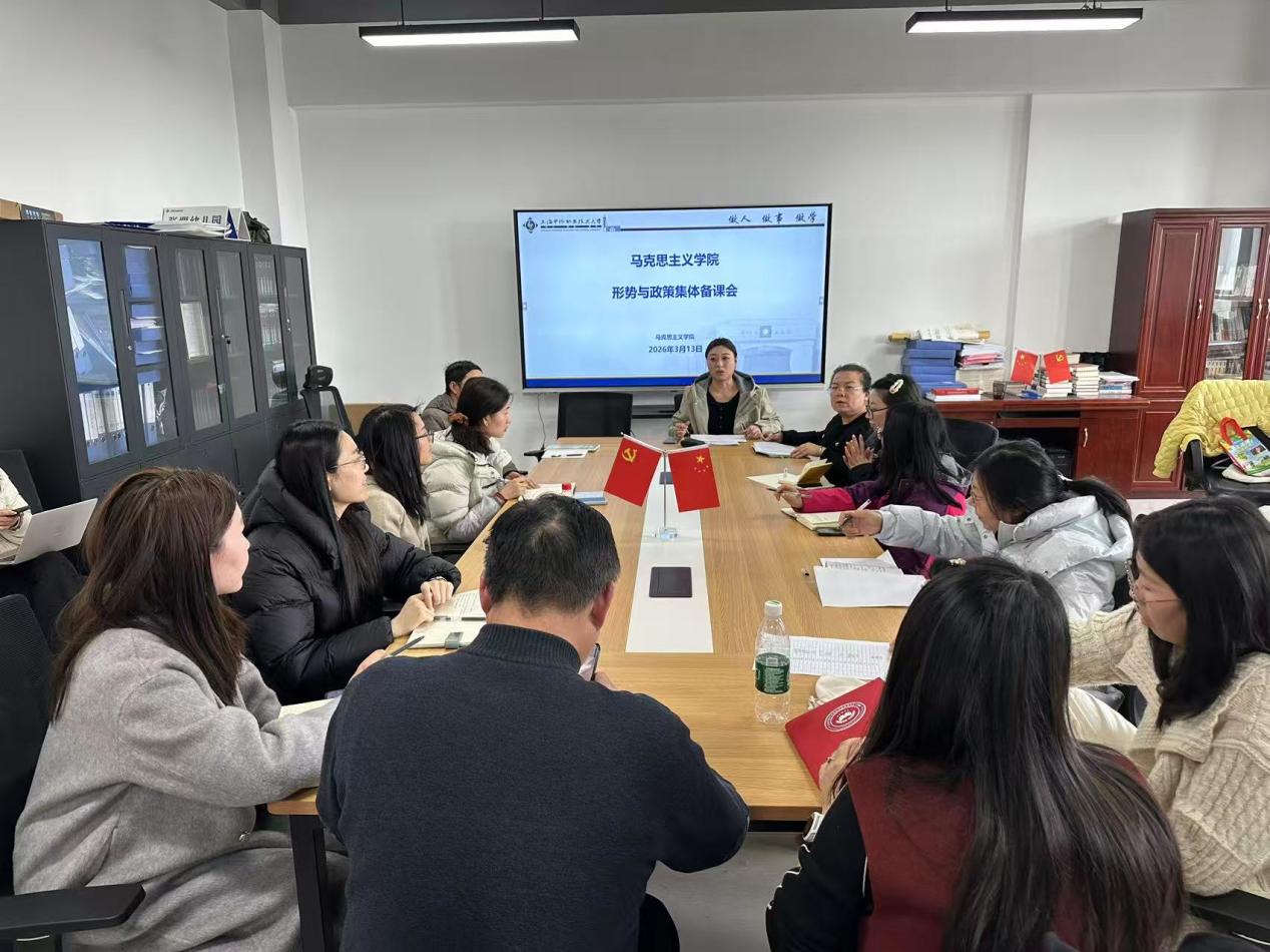 为深入学习贯彻习近平总书记关于思政课建设的重要指示精神,全面落实党中央关于新时代思政课程改革的部署要求,切实提升“形势与政策”课教学质量,3月13日,马克思主义学院召开2026年春季学期《形势与政策》集体备课会。校督导组成员,马克思主义学院班子成员及全体“形势与政策”任课教师参加。