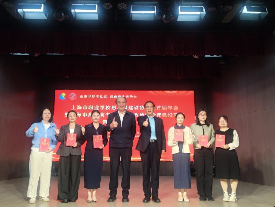 在大会表彰环节,我院多位教师荣获2025年度上海市职业学校思政课建设各类竞赛奖项。学院教师代表依次上台领奖,展现了学校在思政课教学竞赛、课程建设及理论研究等方面的突出成绩。