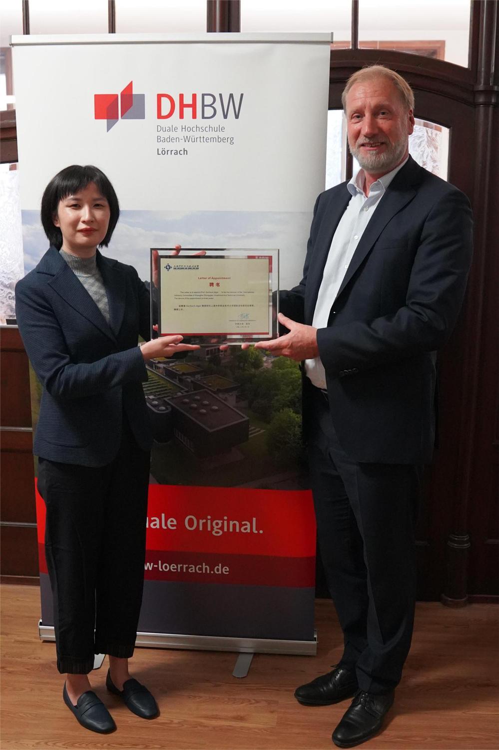 On behalf of the university, Yan Hui, the director of the university, visited the dual system Applied Technology University in Baden Wuerttemberg, Germany, and awarded the appointment letter of member of the International Advisory Committee of Shanghai Zhongqiao vocational and Technical University to Gerhard Jager, a German professor.