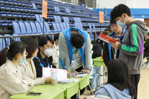 In the gymnasium, in front of the service point formed by the colleges and functional departments, many students and parents are consulting!