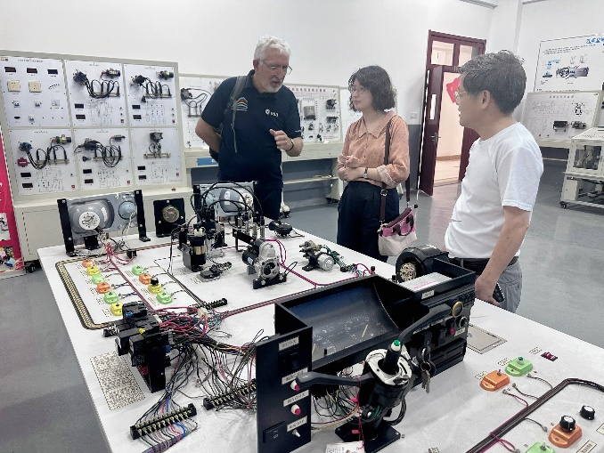 In the new energy vehicle training room of the Intelligent Manufacturing School, Professor Jean-Claude Ruano-Borbalan had an in-depth exchange with the teachers to discuss the future development trend of the field of new energy vehicles. In the DJI Drone training room of the School of Information Engineering, he lamented that the advanced equipment and innovative concept of Zhongqiao can stimulate students' strong interest in learning and research in this field.