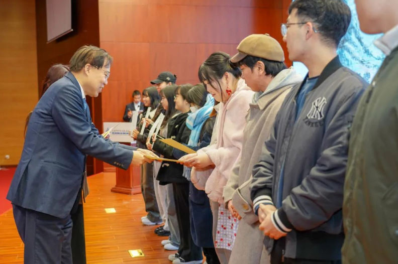 President Huo Jiazhen of Shanghai Zhongqiao Vocational and Technical University presented graduation certificates to students from Kyungnam University.