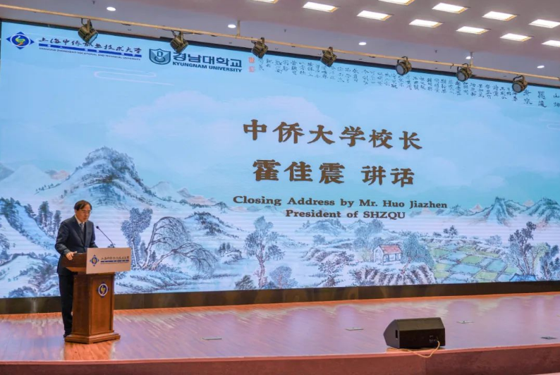 President Huo Jiazhen of Shanghai Zhongqiao Vocational and Technical University presented graduation certificates to students from Kyungnam University.