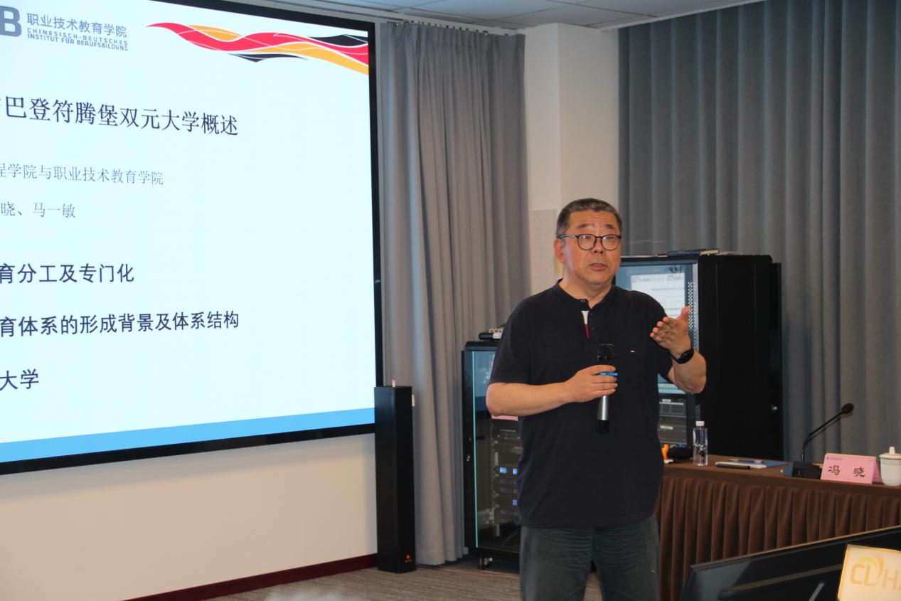 Vice President Feng Xiao delivered the first lecture on "Innovation Value Chain and Division of Labor and Specialization in Education, the Background and System Structure of the German Modern Higher Education System, and the Dual System of the DHBW" to build a comprehensive and advanced knowledge system for teachers and lay a solid theoretical foundation for future training in Germany. He mentioned that as the first state dual system university in Germany, the DHBW focuses on vocational orientation and cooperative research and development, emphasizing the cultivation of high-level talent cultivation and the integration with applied disciplines and professional systems. The talent cultivation model design and practical logic of the German dual system universities, which are "ability-oriented, theory-practice integrated, and dual learning", have positive value for the creation of a vocational undergraduate talent cultivation model with Chinese characteristics.