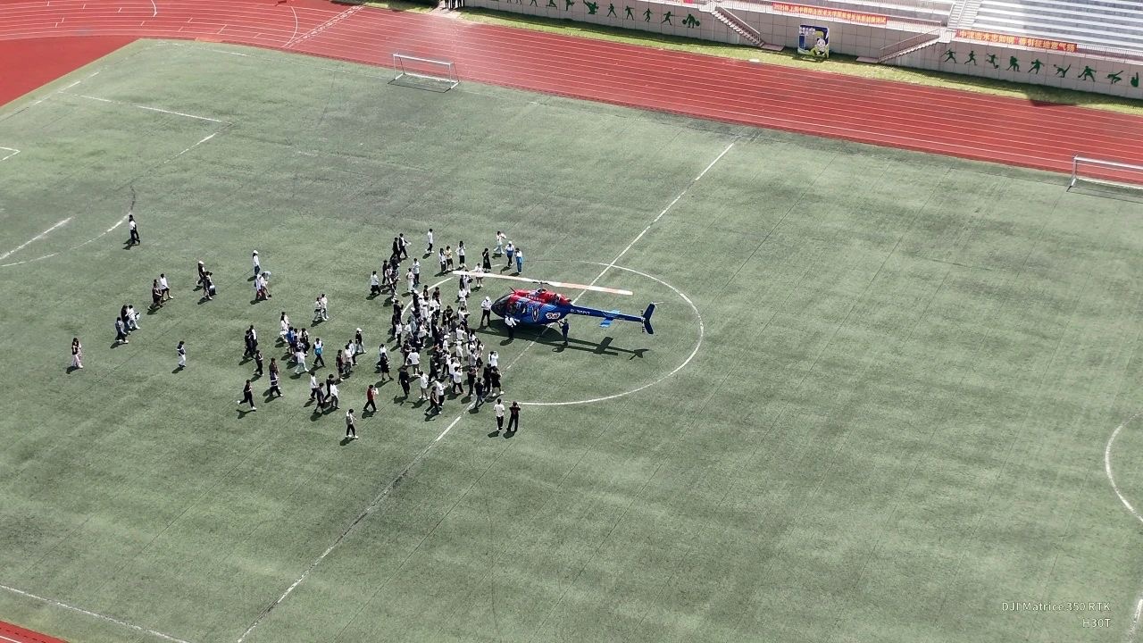 Prior to the forum, a helicopter marked with the “Zhanma” logo landed on campus after flying from Pudong Airport, signaling the official debut of the Low-Altitude Economy Industry Academy. Crew members delivered a live demonstration class on the sports field, turning the rotor’s wind into a real-world learning experience. Simultaneously, a Low-Altitude Economy Technology Exhibition was held in the university library’s lobby, featuring industrial drones, drone logistics models, and airspace management systems that captured widespread attention.