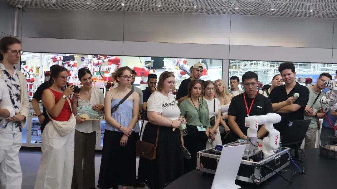 The observation activity took place at JAKA’s headquarters in Shanghai, where the company’s senior management warmly welcomed the delegation. Guided by professional staff, the students and faculty toured the product showroom and R&D center. The students showed great interest in the technical features of JAKA robots and engaged in active discussions with engineers on key technological topics. JAKA’s advanced manufacturing processes, rigorous quality management system, and highly automated production capabilities left a strong impression, giving participants a direct and deeper understanding of the “quality” and “speed” of Chinese intelligent manufacturing.