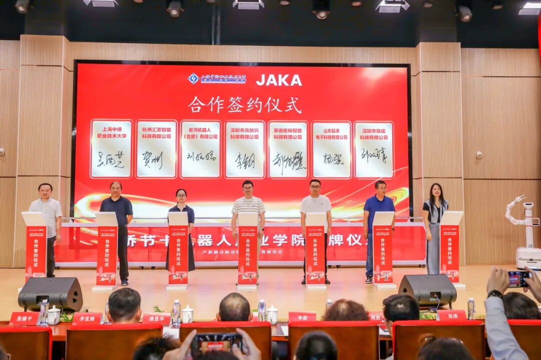 Shanghai Zhongqiao Vocational and Technical University (SHZQU) and JAKA Robotics Inc. officially inaugurated the Zhongqiao-JAKA Robotics Industry Institute in a grand ceremony held at the university. The event, themed "New Momentum for Industry-Education Integration, New Paradigm for Talent Cultivation", was attended by distinguished guests from government, industry associations, and partner academic institutions, marking a milestone in nurturing talent for the intelligent manufacturing sector.