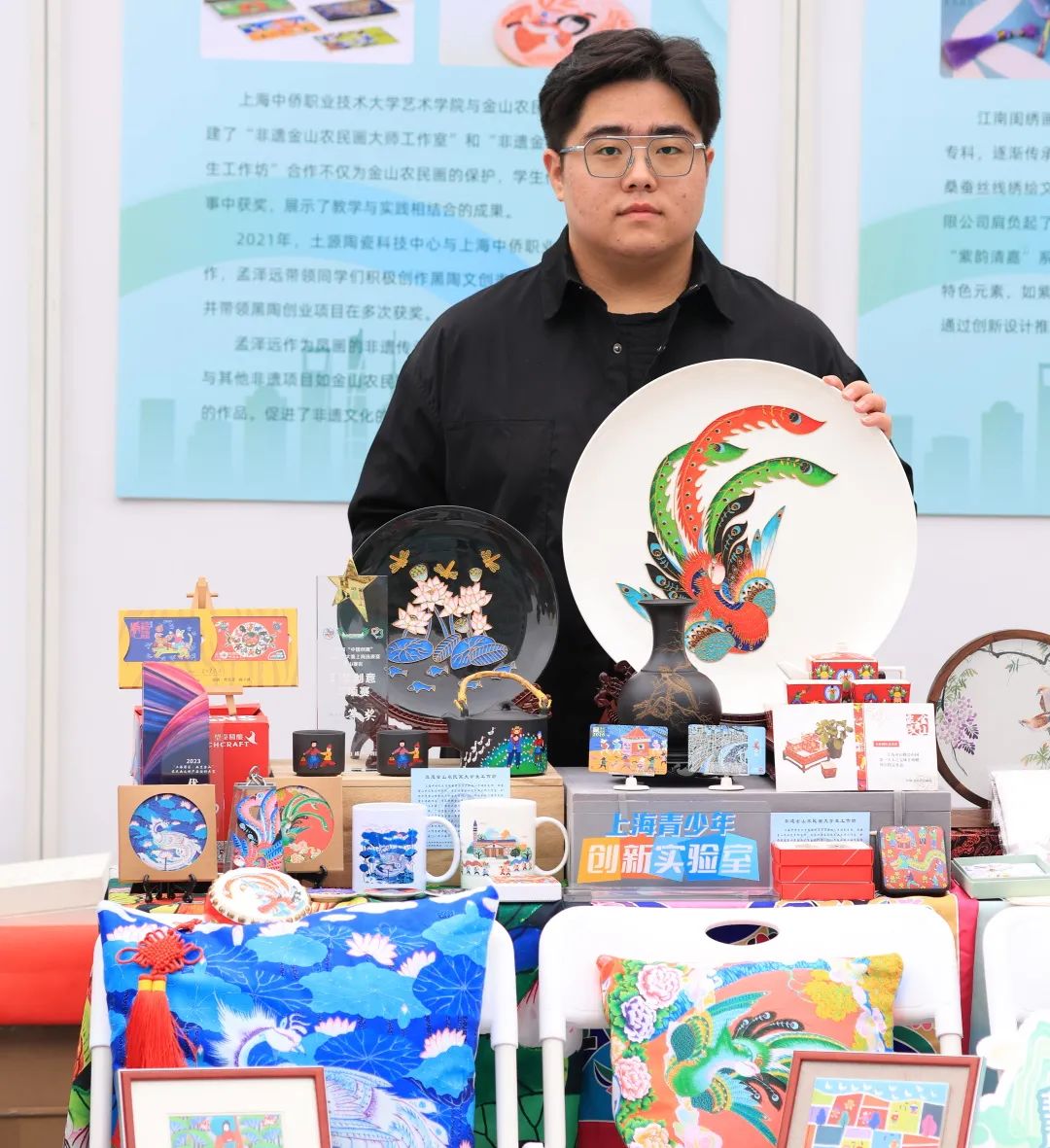 The cultural and creative works of the intangible cultural heritage workshop for college students from the School of Arts were showcased at the Shanghai Youth Innovation Achievement Exhibition