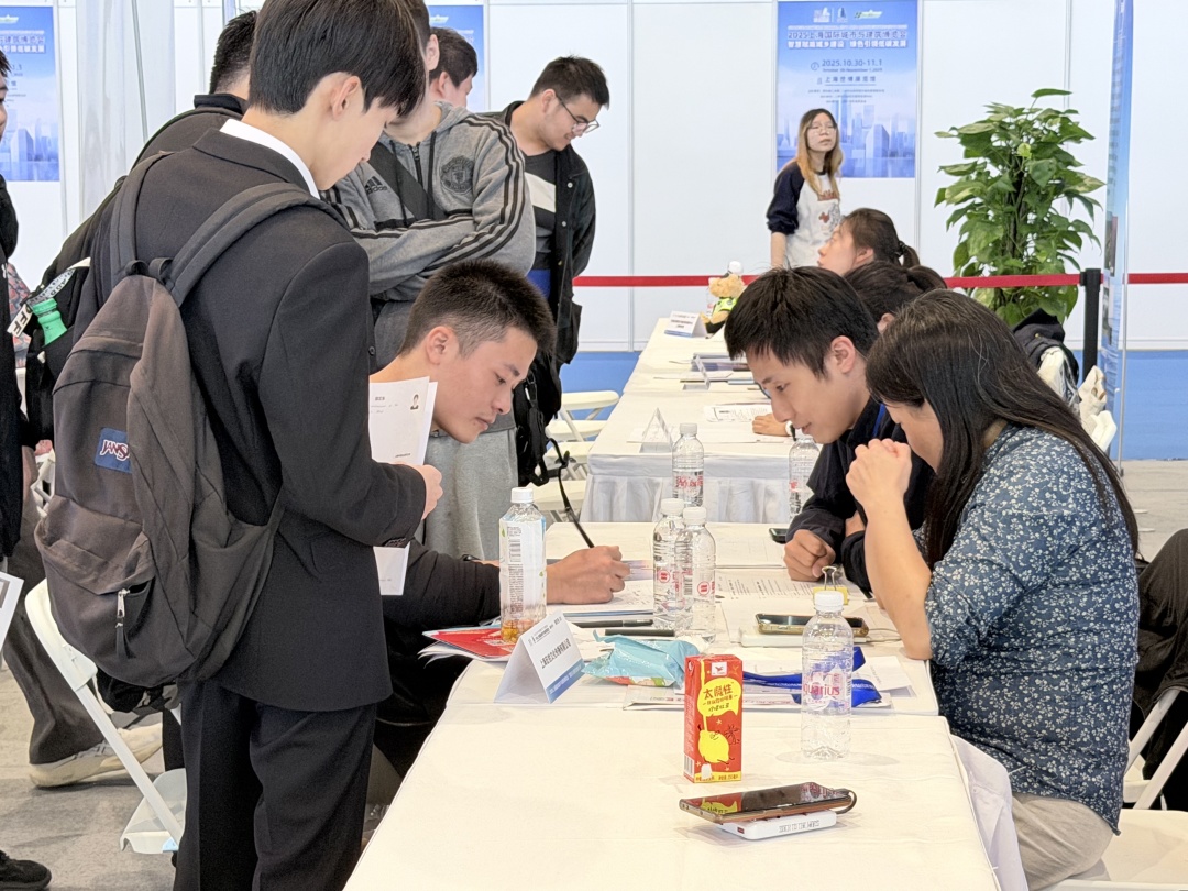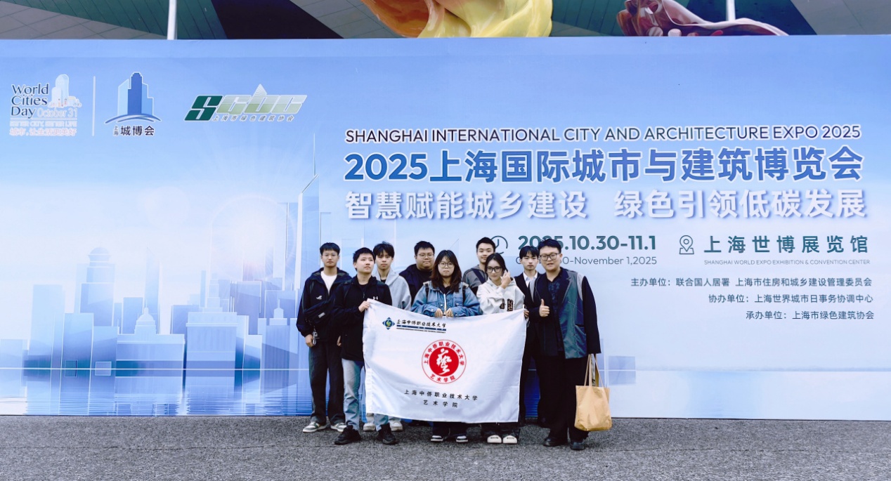 On October 30, 2025, Teacher Zhang Delin, the secretary of the Youth League Committee of the Art College of Shanghai Zhongqiao Polytechnic University, led the 2026 graduates of the college to the Shanghai World Expo Exhibition and Convention Center to participate in the "Construction and Transportation Position Promotion Conference" of the 2025 Shanghai International City and Architecture Expo.