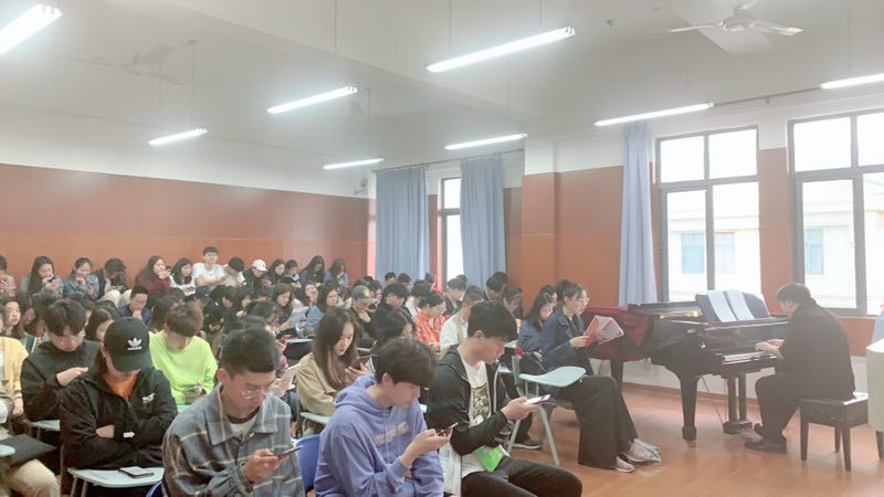 5月8日下午17时,党校第十九期高党学员在艺术学院声乐教师云鹏的指导下,认真学唱歌曲《我和我的祖国》《国际歌》。