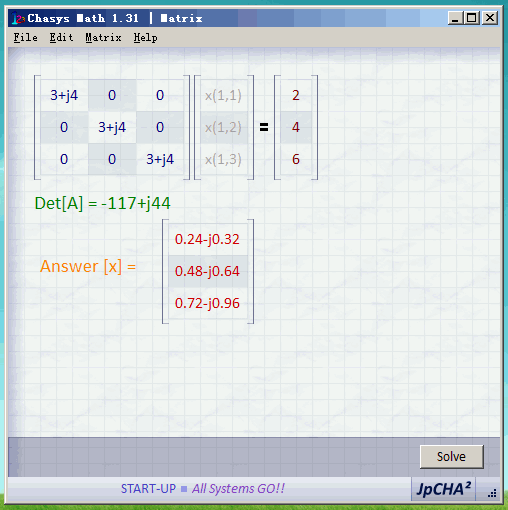 Chasys Math是一款界面豪华美观的高等数学计算器,体积小巧,可用于处理矩阵方程求解等,由于是国外大学开发的软件,故而软件语言是英文版,该计算器也可用于函数图像绘制。在此供我系专升本攻读高数课程或有志于出国深造的同学下载使用。(Gu Tao搜索提供)