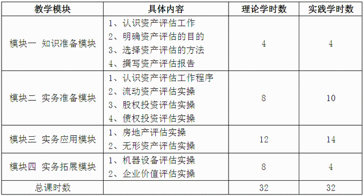 (4)教学内容:开发资产评估师事务所真实案例,提高学生对该课程的学习兴趣,重点提高学生解决评估工作实例的能力。