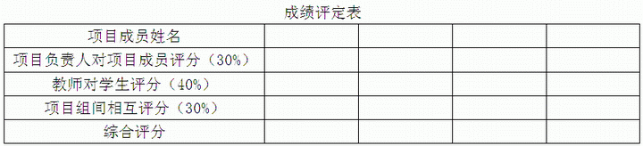 创新点四:采用多种考核方式相结合,在对学生考核评价中,设计成绩评定表和评分体系: