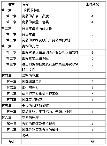 2.课程性质:《国际贸易实务》是国际商务专业的一门专业基础及专业课,是贸易经济业界从业人员的必修通用课程。《国际贸易实务》研究对外贸易活动中一般商品进出口的实务操作,是一门专门研究国际间商品交换的具体过程的学科,是一门具有涉外活动特点的实践性很强的综合性应用学科。涉及国际贸易法律与惯例、商品学、国际金融、国际运输与保险、进出口报关等学科的基本原理与基本知识的运用。