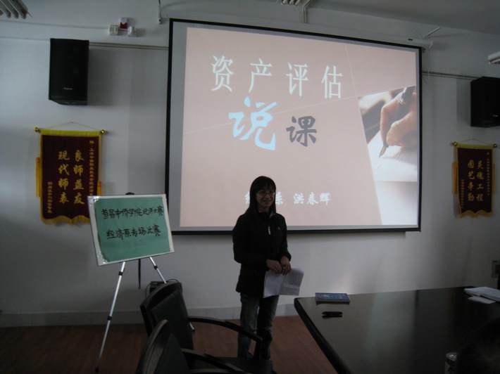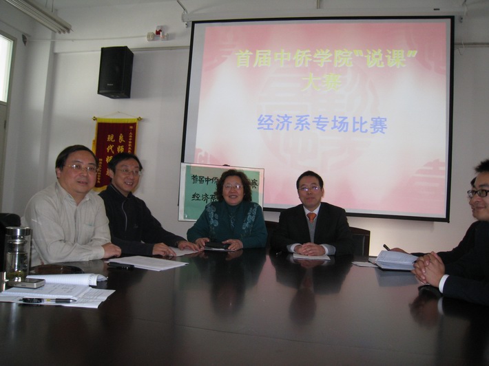 经过大家的努力,经济系于2009年11月24日中午12:15分,在一号楼401教室进行了一次专场比赛。作为参加首届中侨学院“说课”大赛的选拔赛。全体专职教师都精心准备了“说课”的PPT课件和讲稿,认真参与比赛。大赛特别邀请了教务处吕珊清处长和柳伟处长助理观摩了这次比赛。